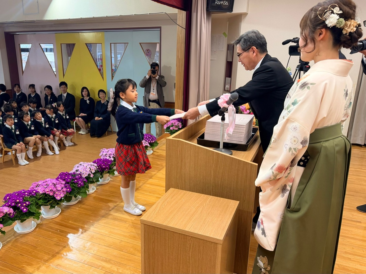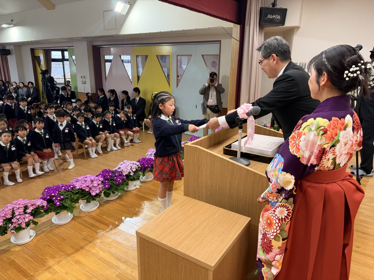 園長先生と担任の先生から修了証書をいただきました。
