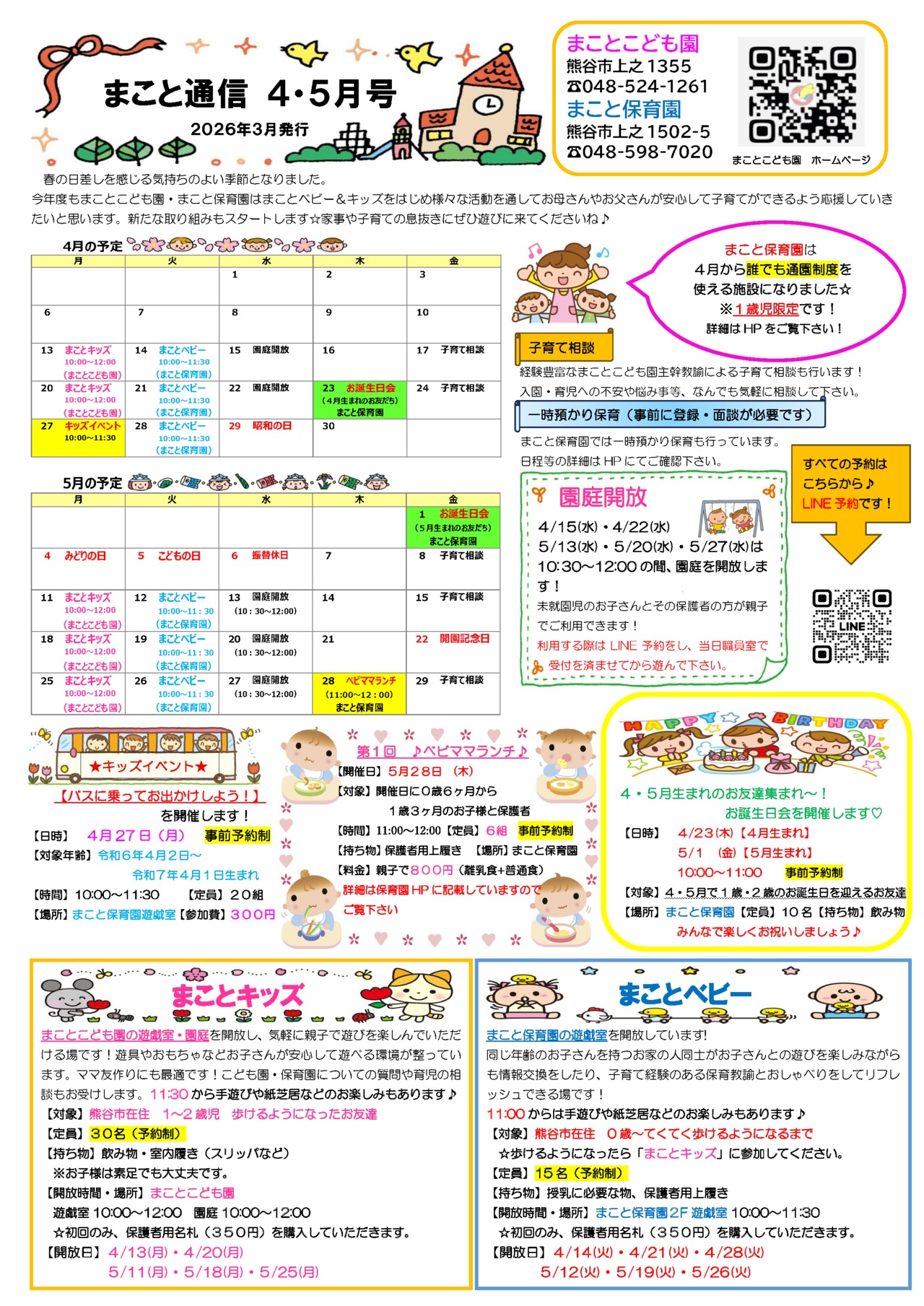 「まことキッズ(月)」「まことベビー(火)」で分かれて開催します!