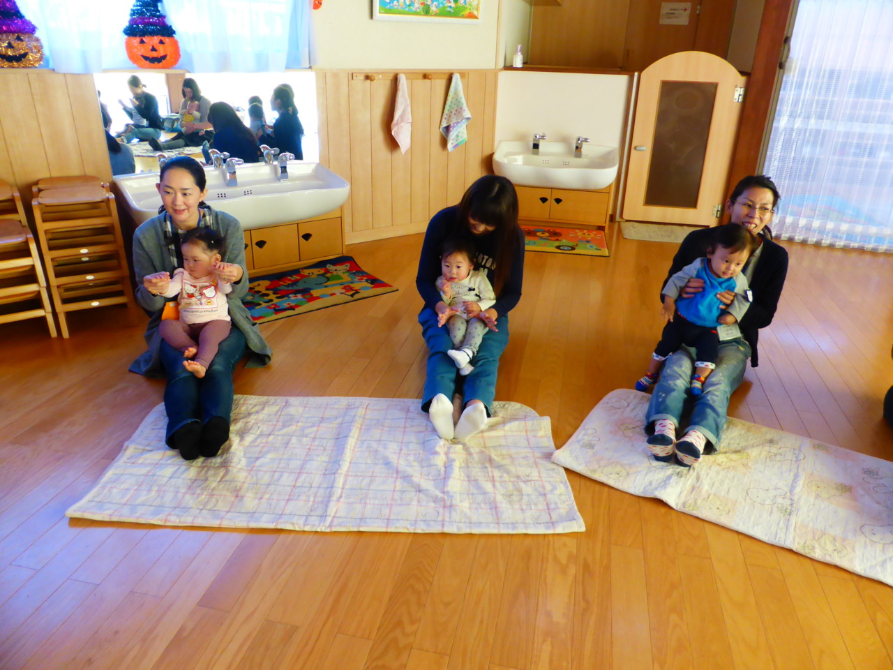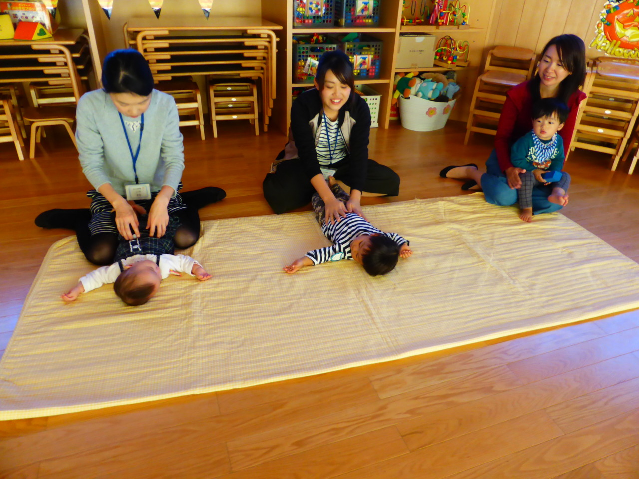ねんねしていたお友だちが、お座りできるようになっていたり、ハイハイできたりと、みんなの成長が見られました。