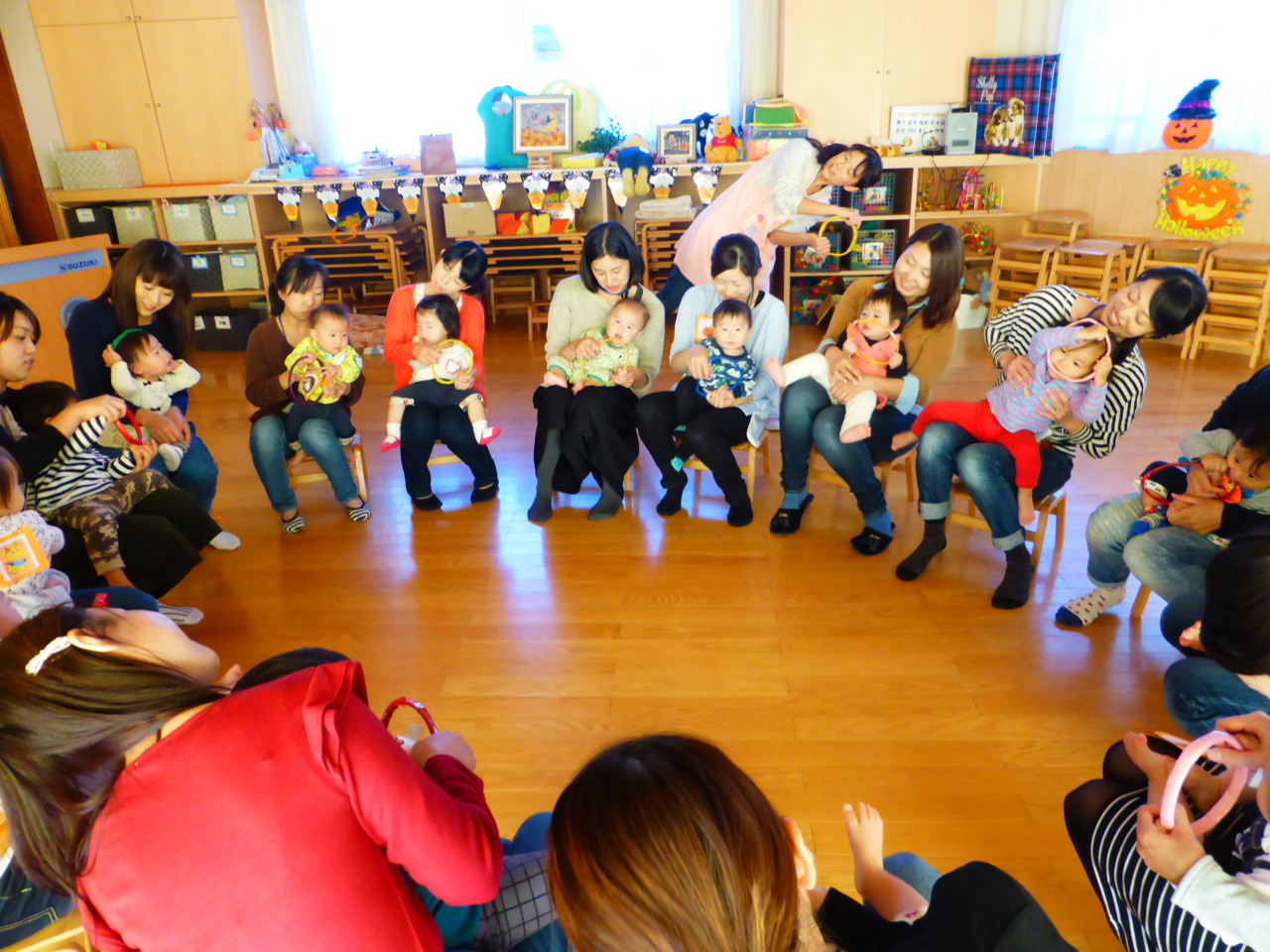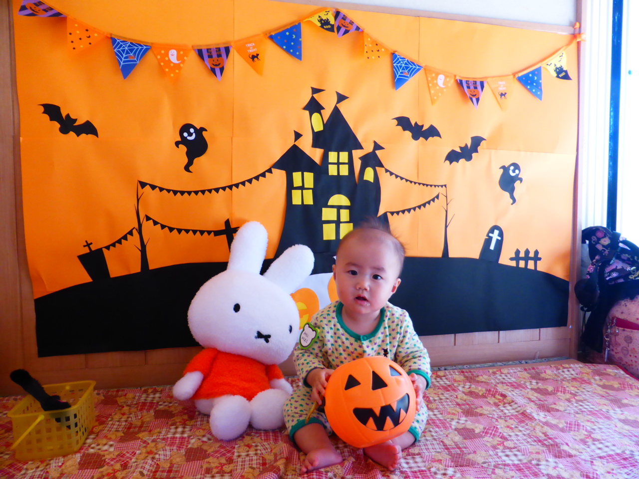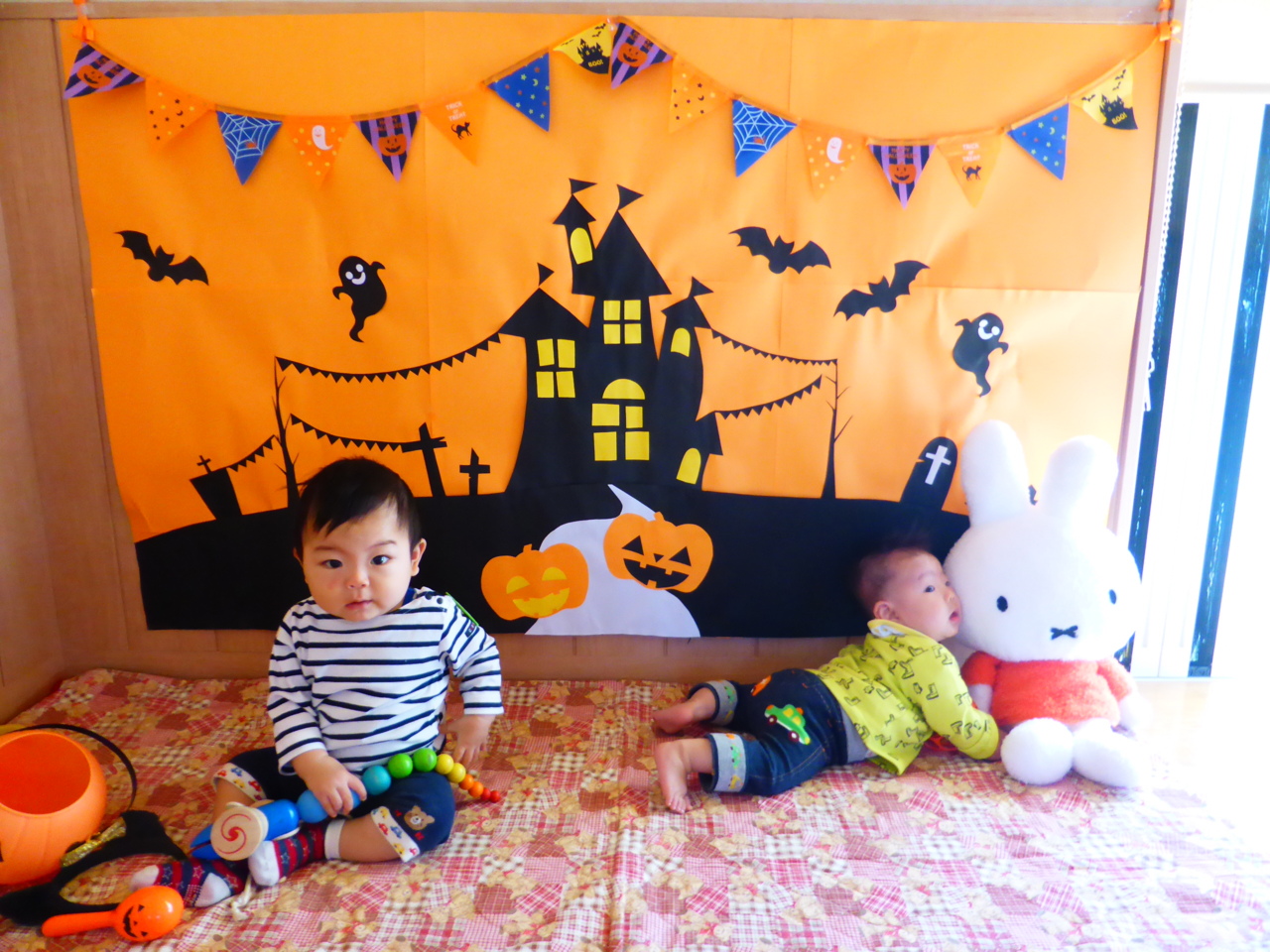 今日のまことベビーは、ハロウィンの飾りつけで華やかなお部屋の中で行いました。