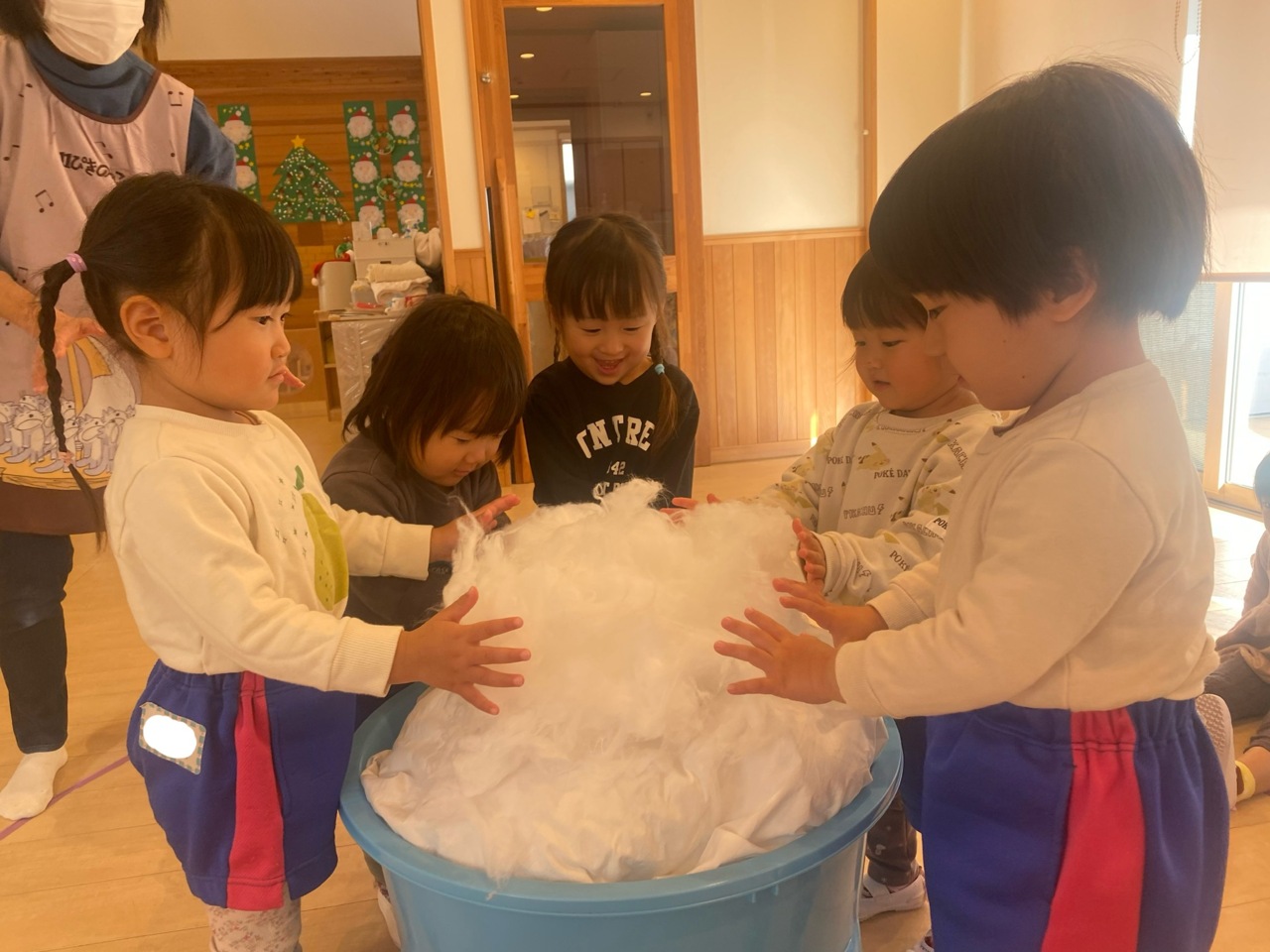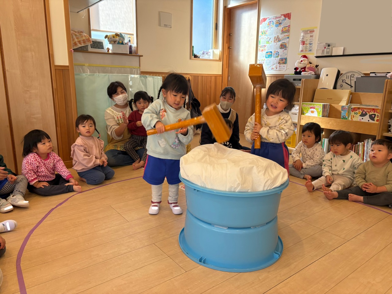 みんなでついたお餅を触っているところです(^ ^)