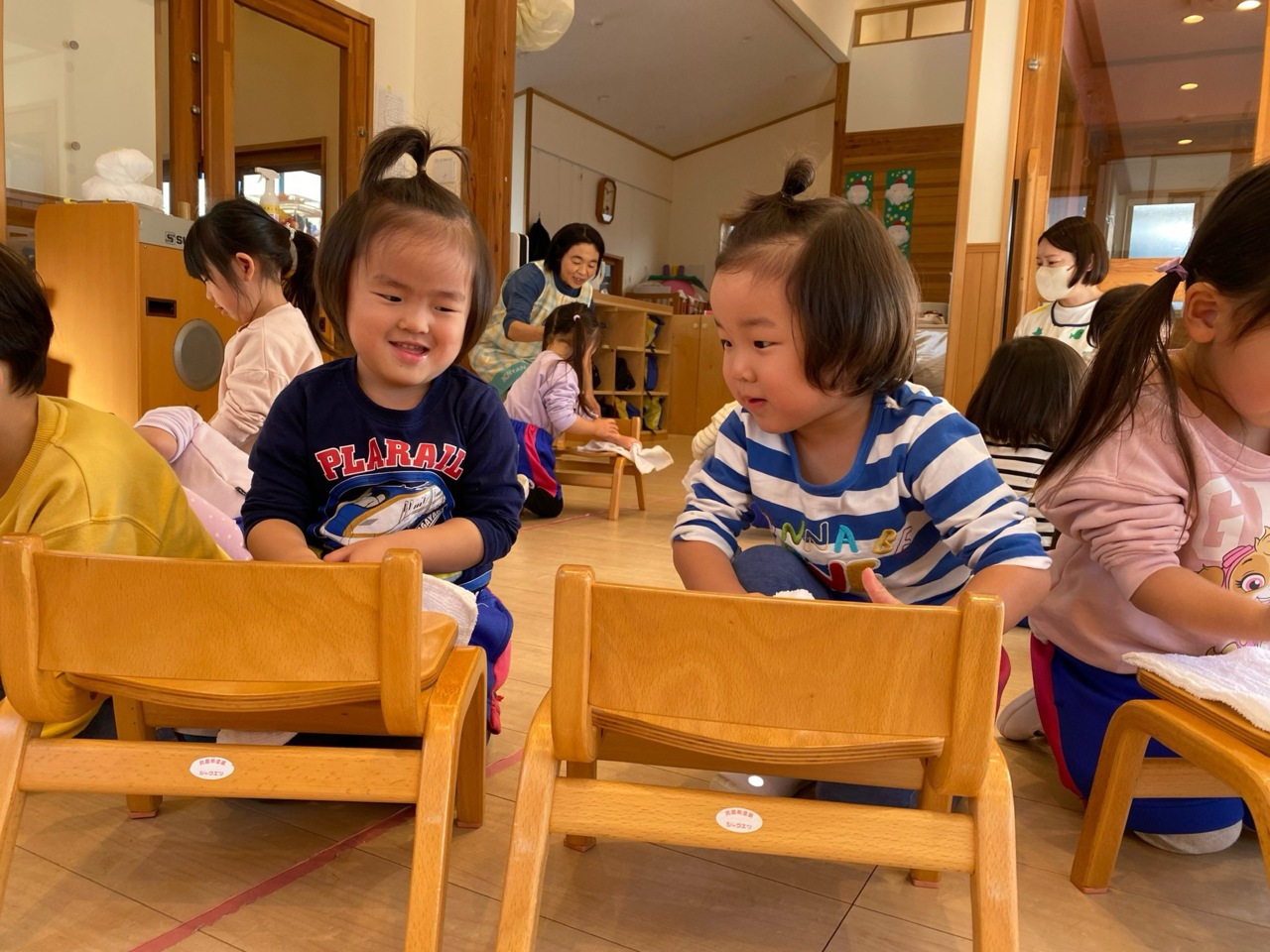 保育室の椅子や床の大掃除をしました♪