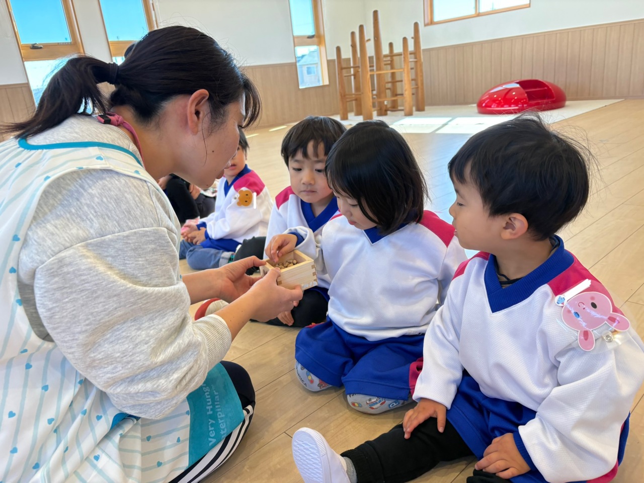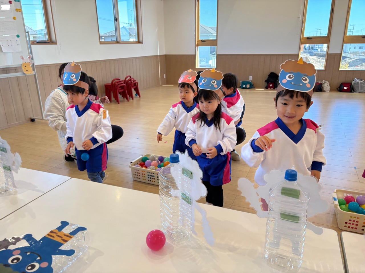 今日は節分! まことクラブも節分のお楽しみをしました♪ 豆まきの練習をしている様子です!