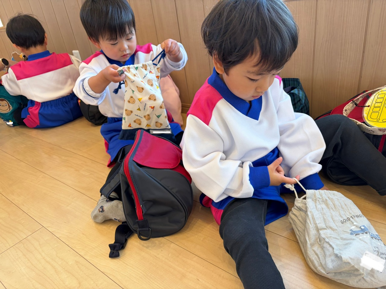 上履きのお片付けです!少しずつ自分の力で頑張っています! 「楽しかったよ」「またこれで遊びたいよ」「もう泣かないよ」などと気持ちを言葉にしてくれるお友達も増えてきました! 先生達はとても嬉しく思っています♪ また来週会えることを楽しみにしていますね☆