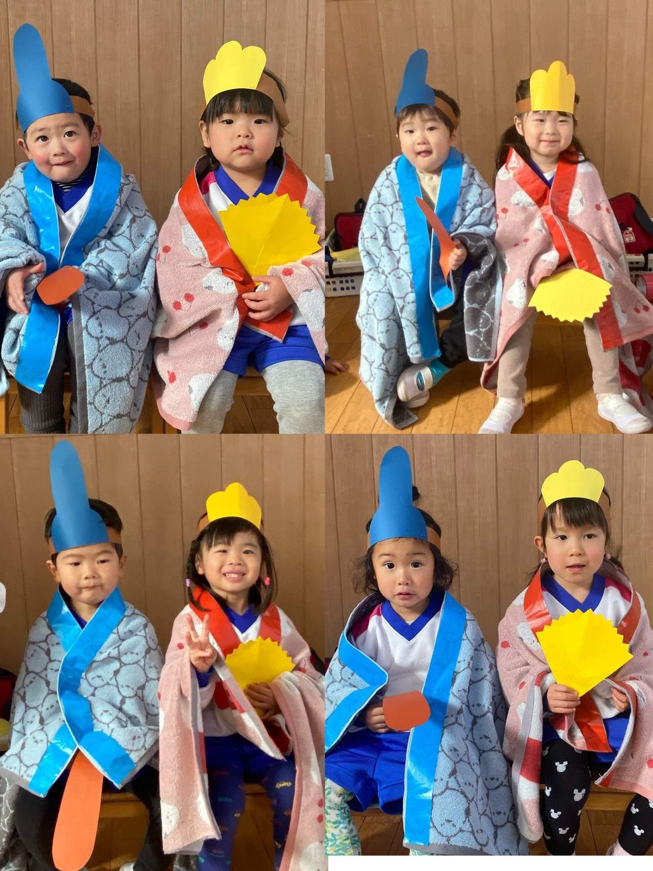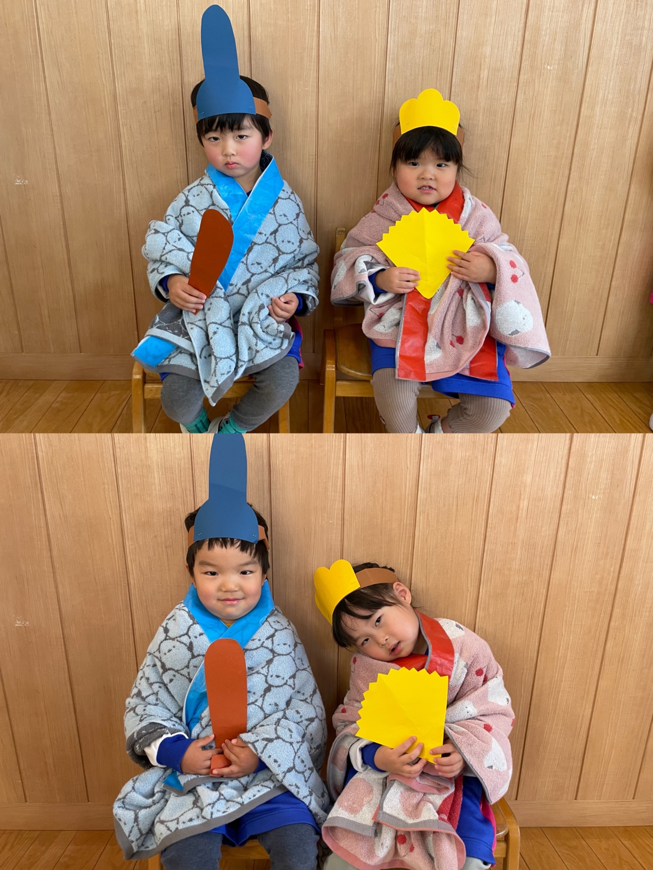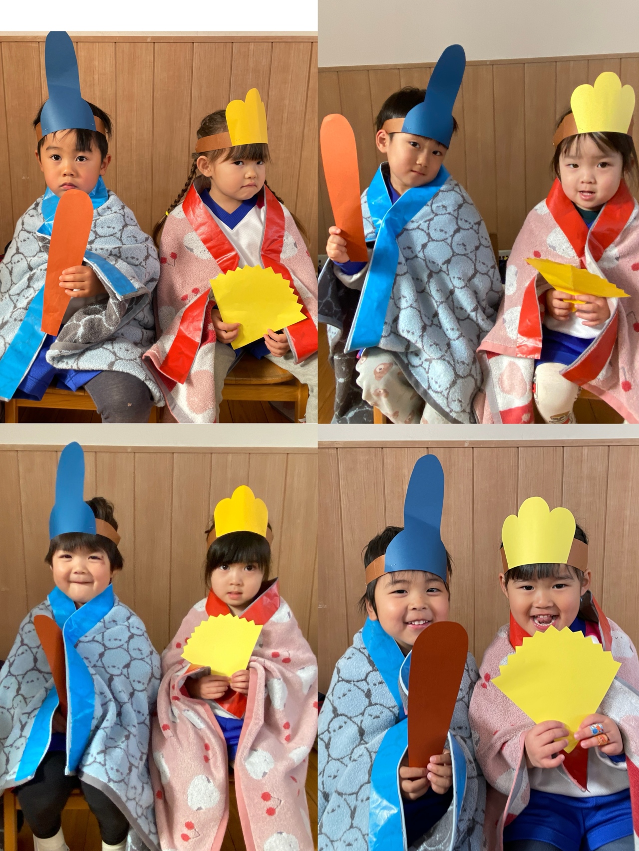 おだいりさまと、おひなさまに変身! にじさんみんなに声をかけて、やってみたいというお友だちが集まりました。 かわいい姿がたくさんです♪