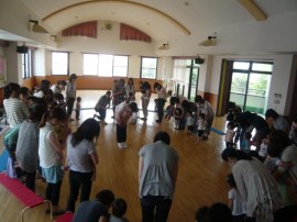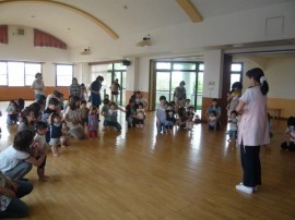 今日は初ゲーム、フルーツバスケットに挑戦!! 楽しい質問も飛び交う中、ママと一緒にお引っ越し(^o^) とっても楽しくできました。 最後はみんなでお帰りのご挨拶。 次回(1・2歳)は、6/24(月)です。 またみんなで楽しく遊びましょう(*^。^*)