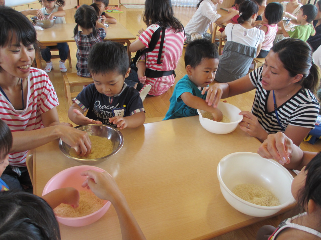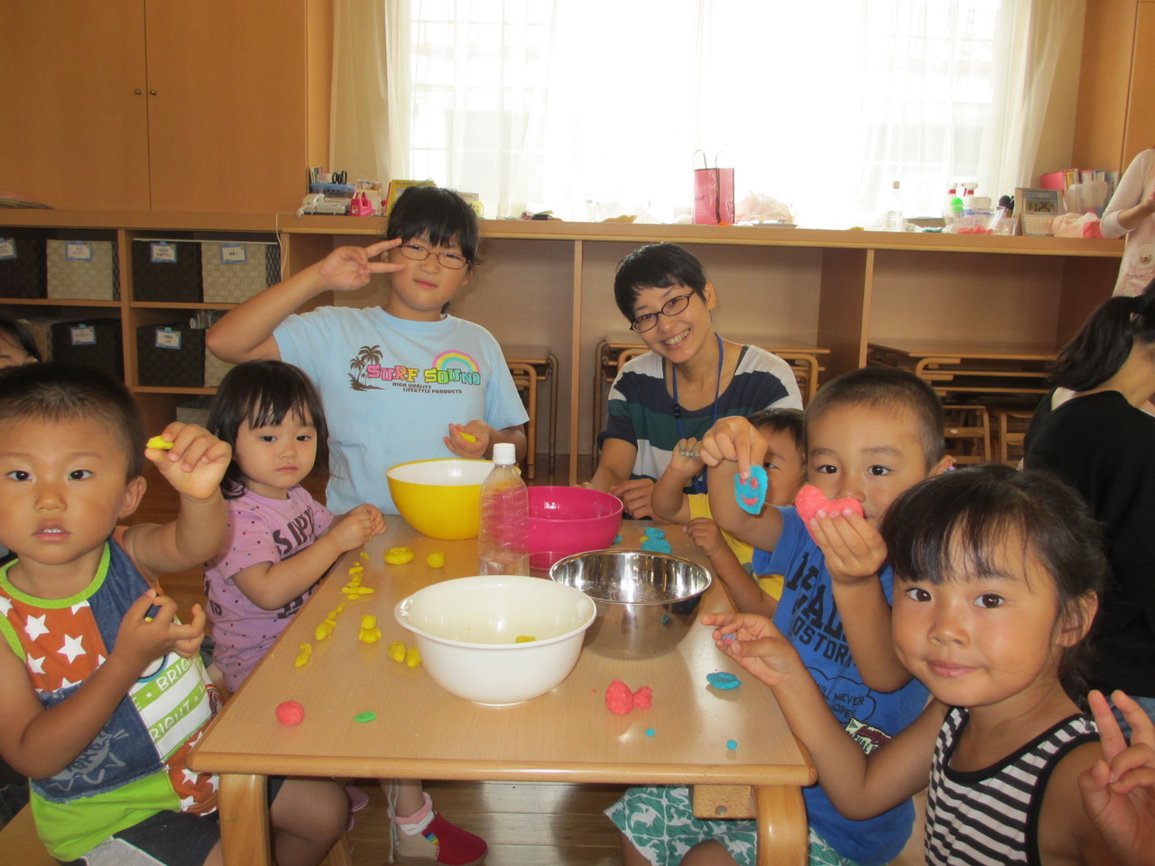 パン粉の感触や匂いを楽しんだり、いろいろな形を作ったり、みんなで楽しく行うことができました(^O^)/