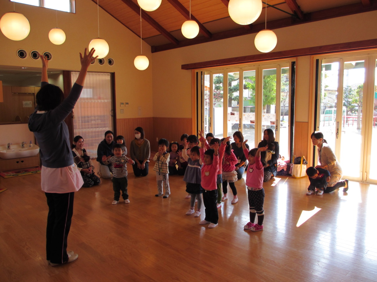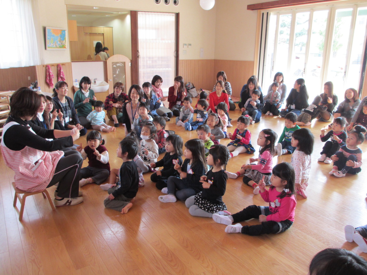 また、今月からおともだちだけで集まって朝のうたやお名前呼び、絵本読みなどを始めました。