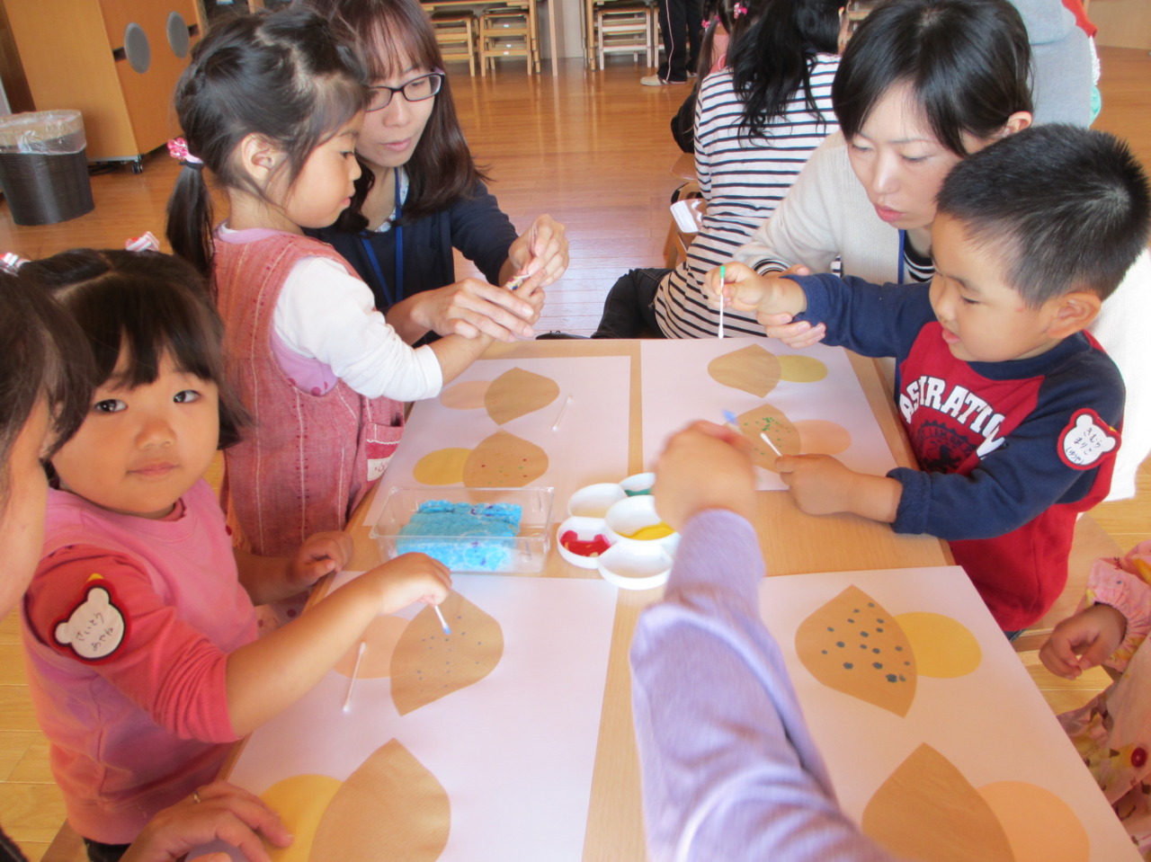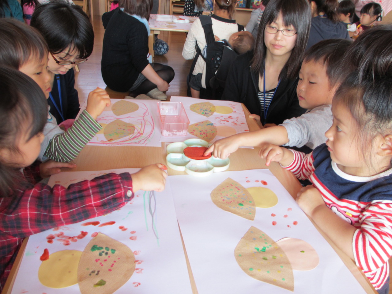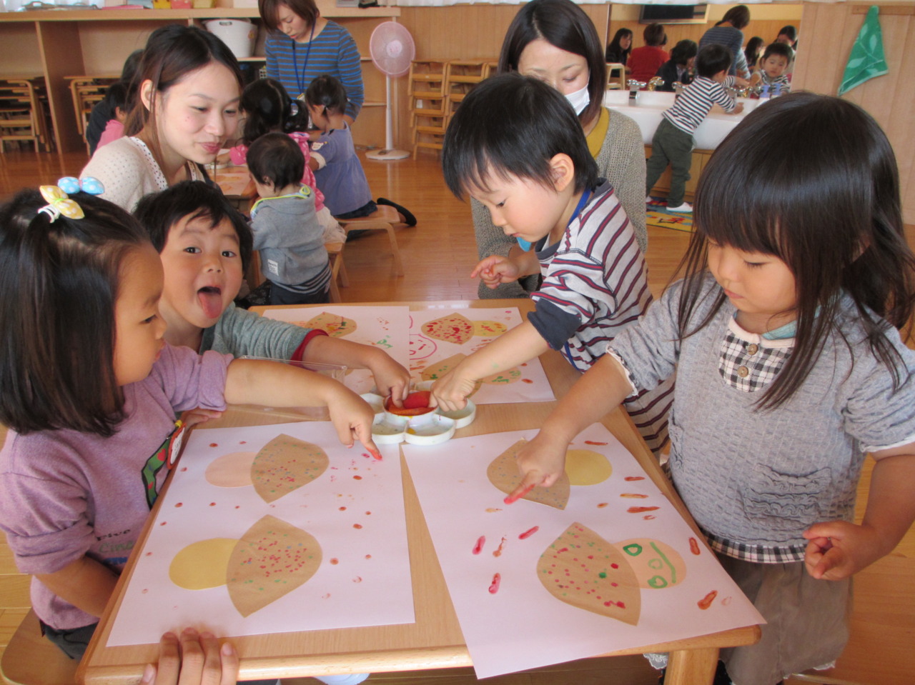 今週は絵の具を使って秋の製作を行いました。