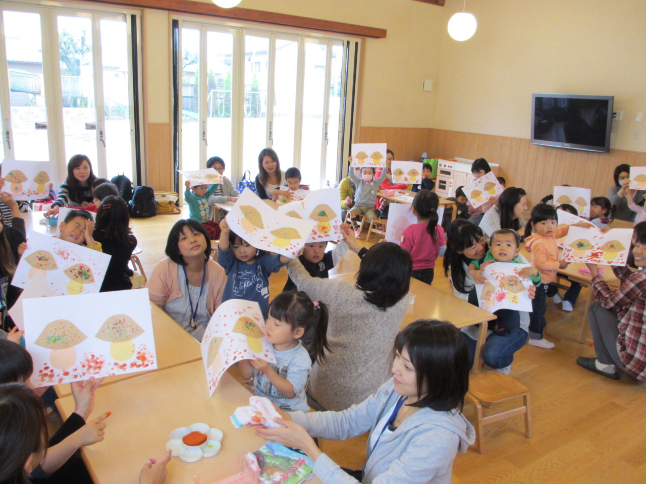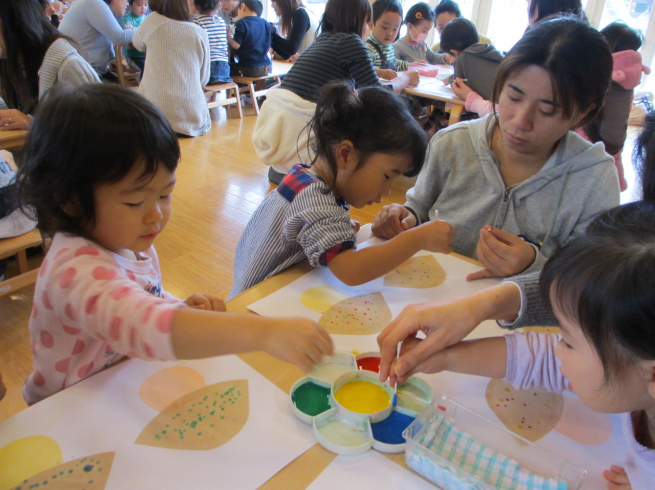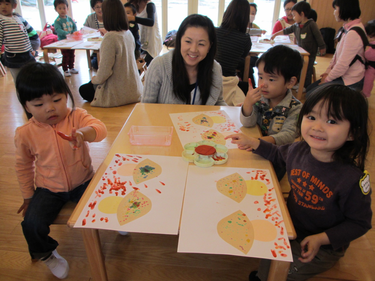今週は絵の具を使って秋の製作を行いました。