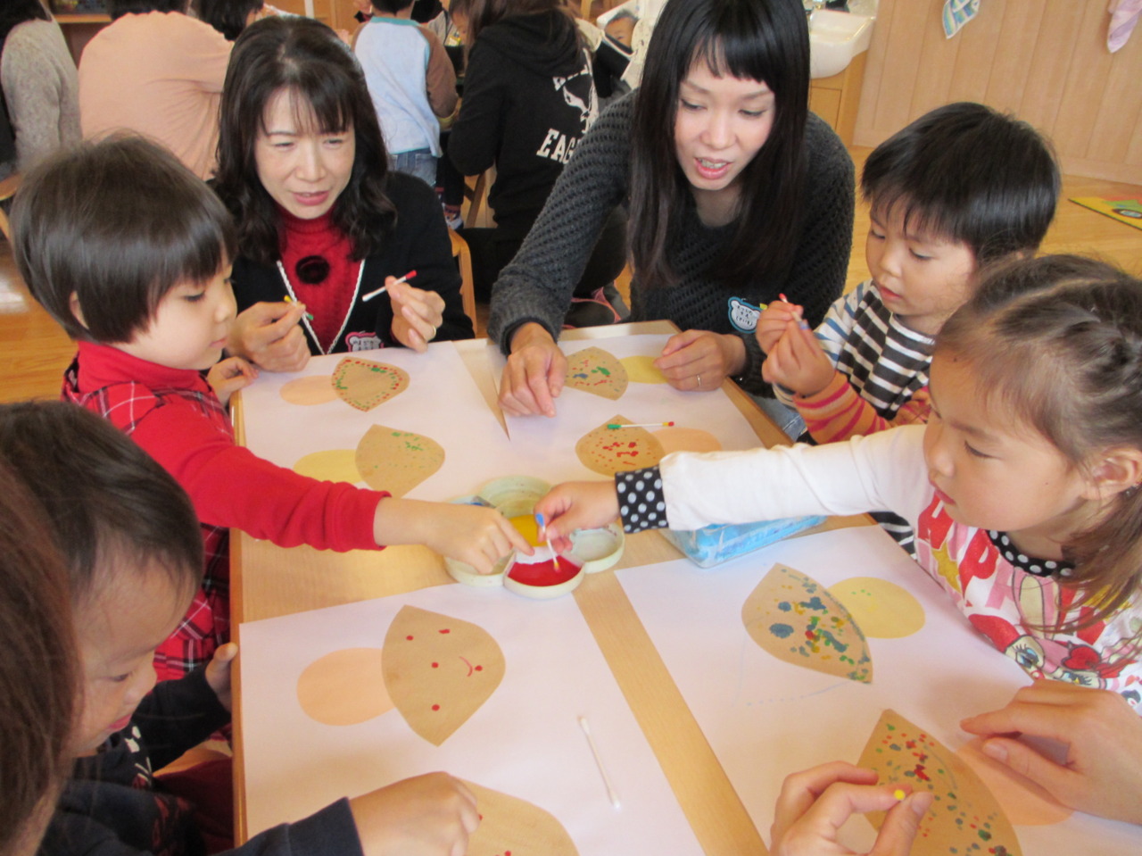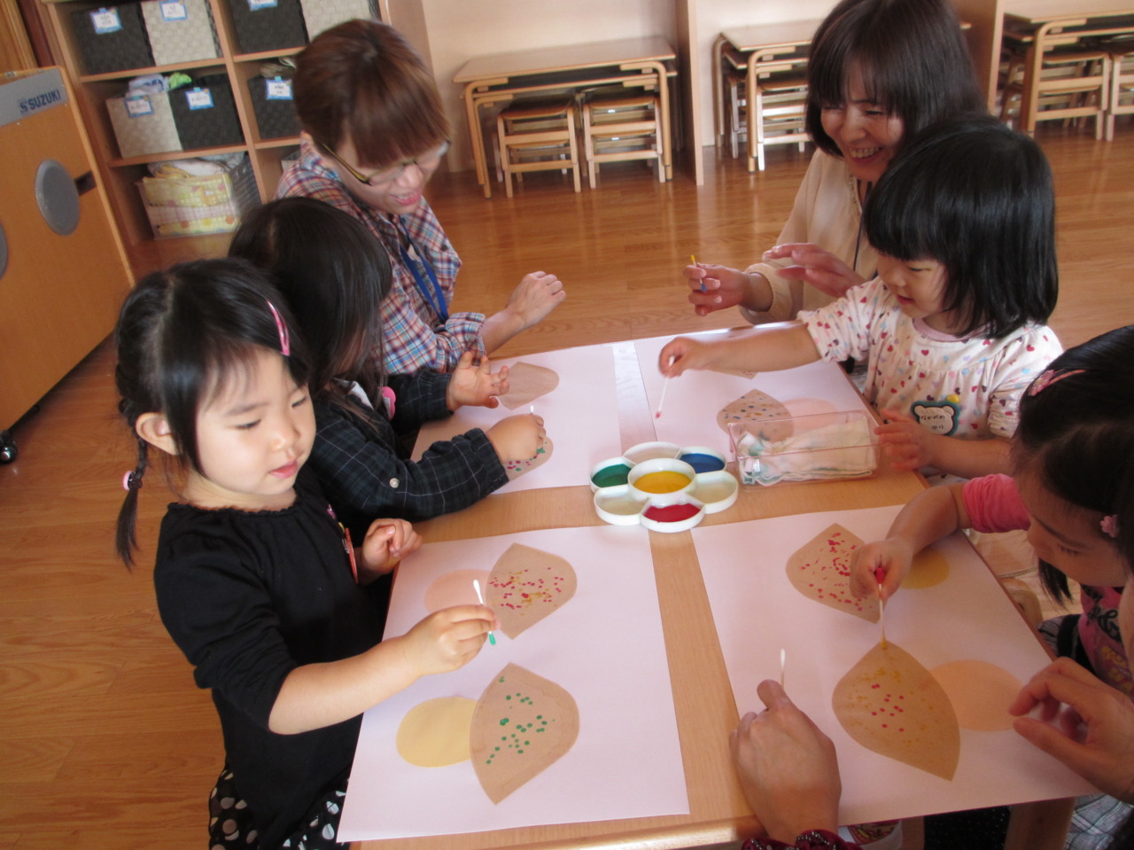 綿棒や指を使って素敵な作品が出来上がりましたね(^v^)