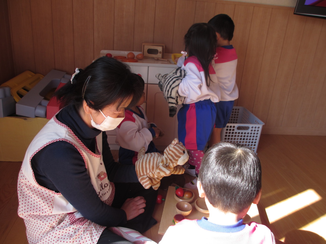 預かり保育はあと1回のみですが、おともだちが少しでも安心して楽しく過ごせる雰囲気作りを心掛けたいと思います。