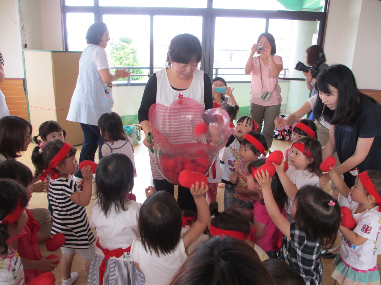 男女対抗のリレーや玉入れ、大きなパラバルーンなどみんなで楽しくおこなえましたね(^O^)/