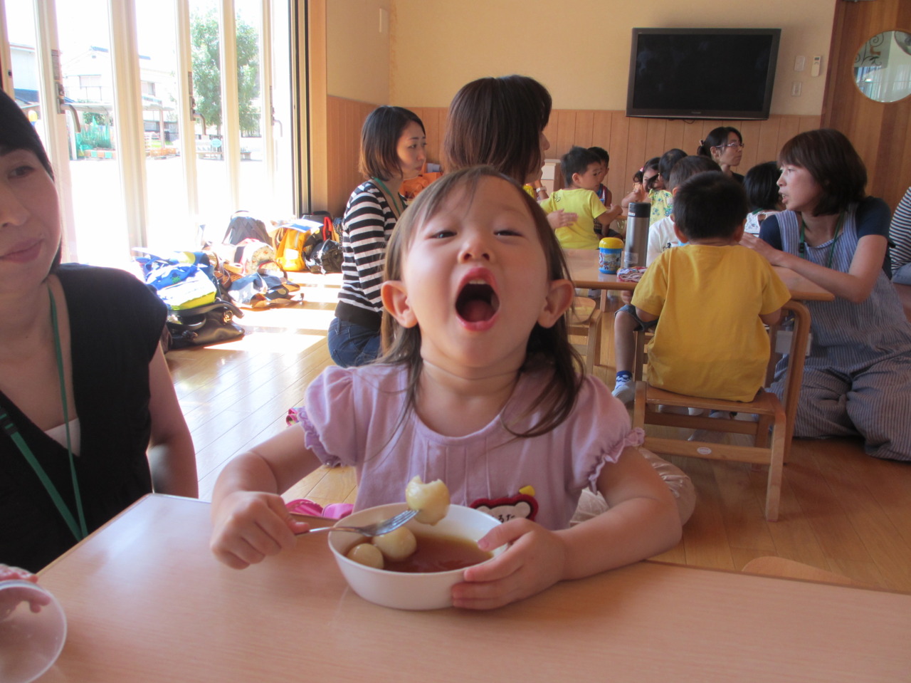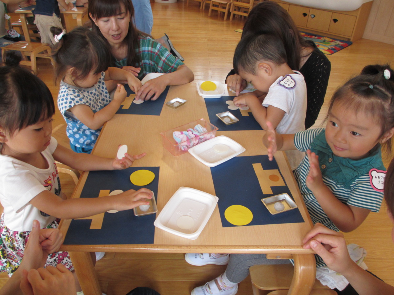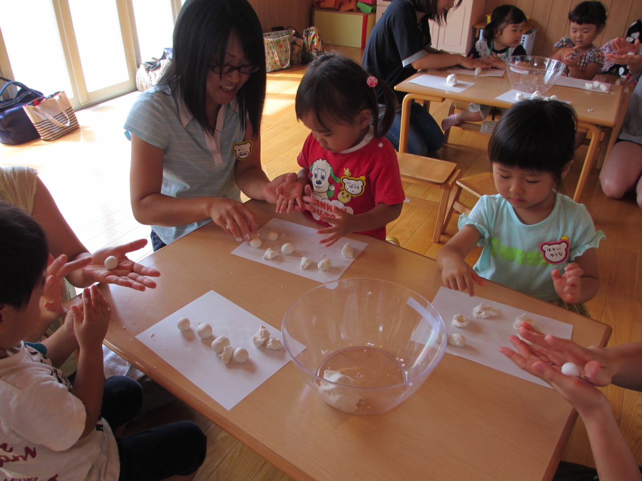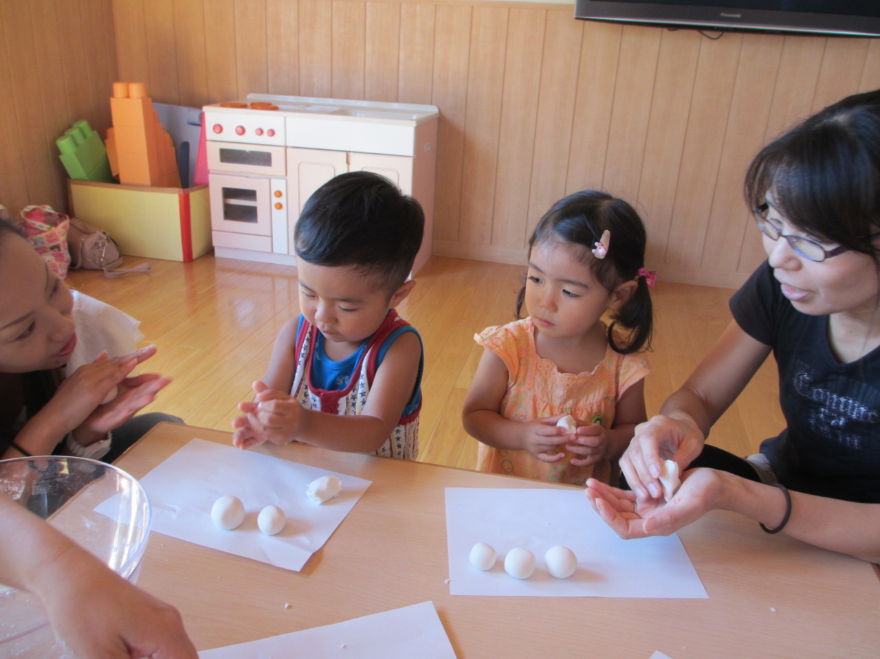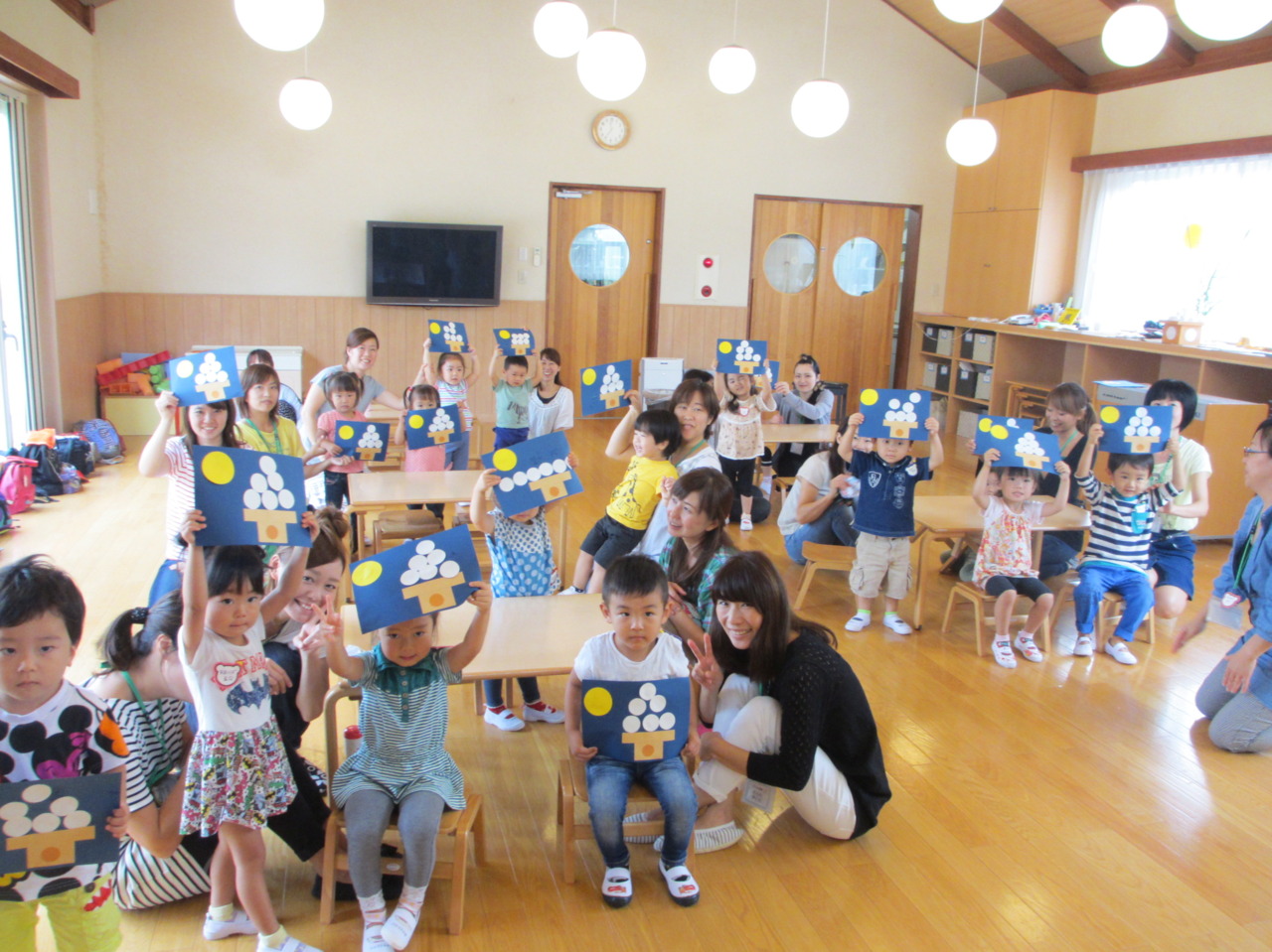 今週は、9月8日の十五夜に先駆け、十五夜のお団子パーティーを行いました!お月さまと同じまんまるのお団子を作り、おやつで食べました(^u^)