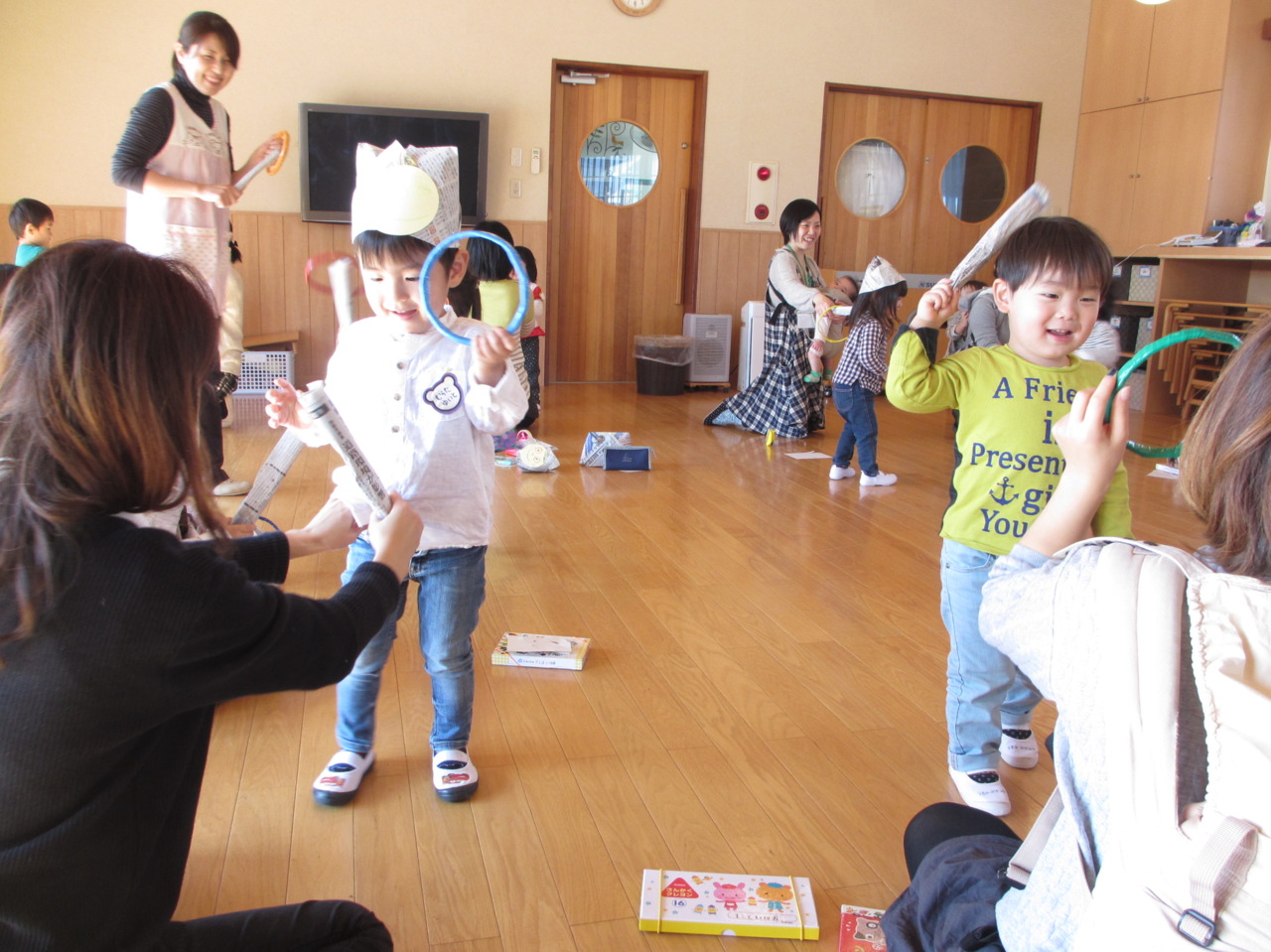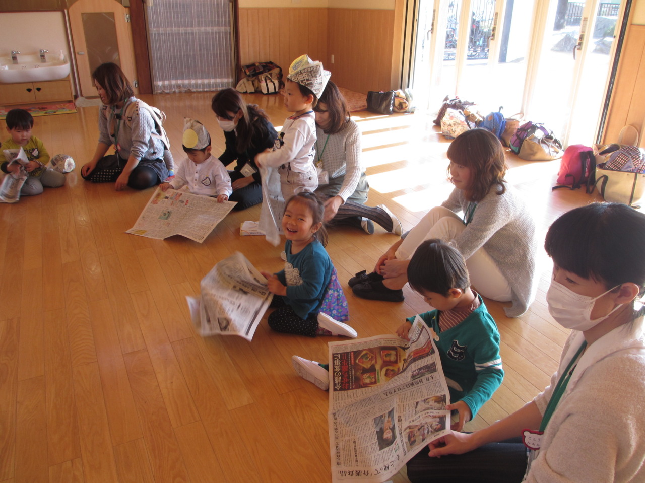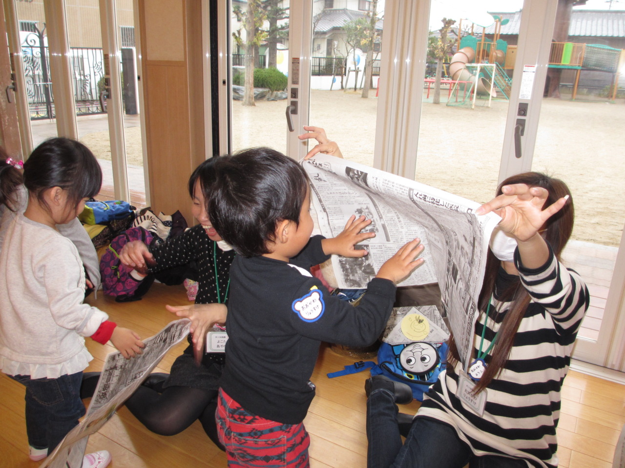 みんな大興奮でとびきりの笑顔が見られた新聞紙あそびでしたヽ(^o^)丿