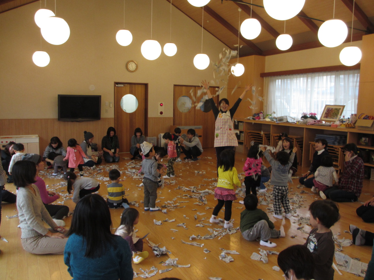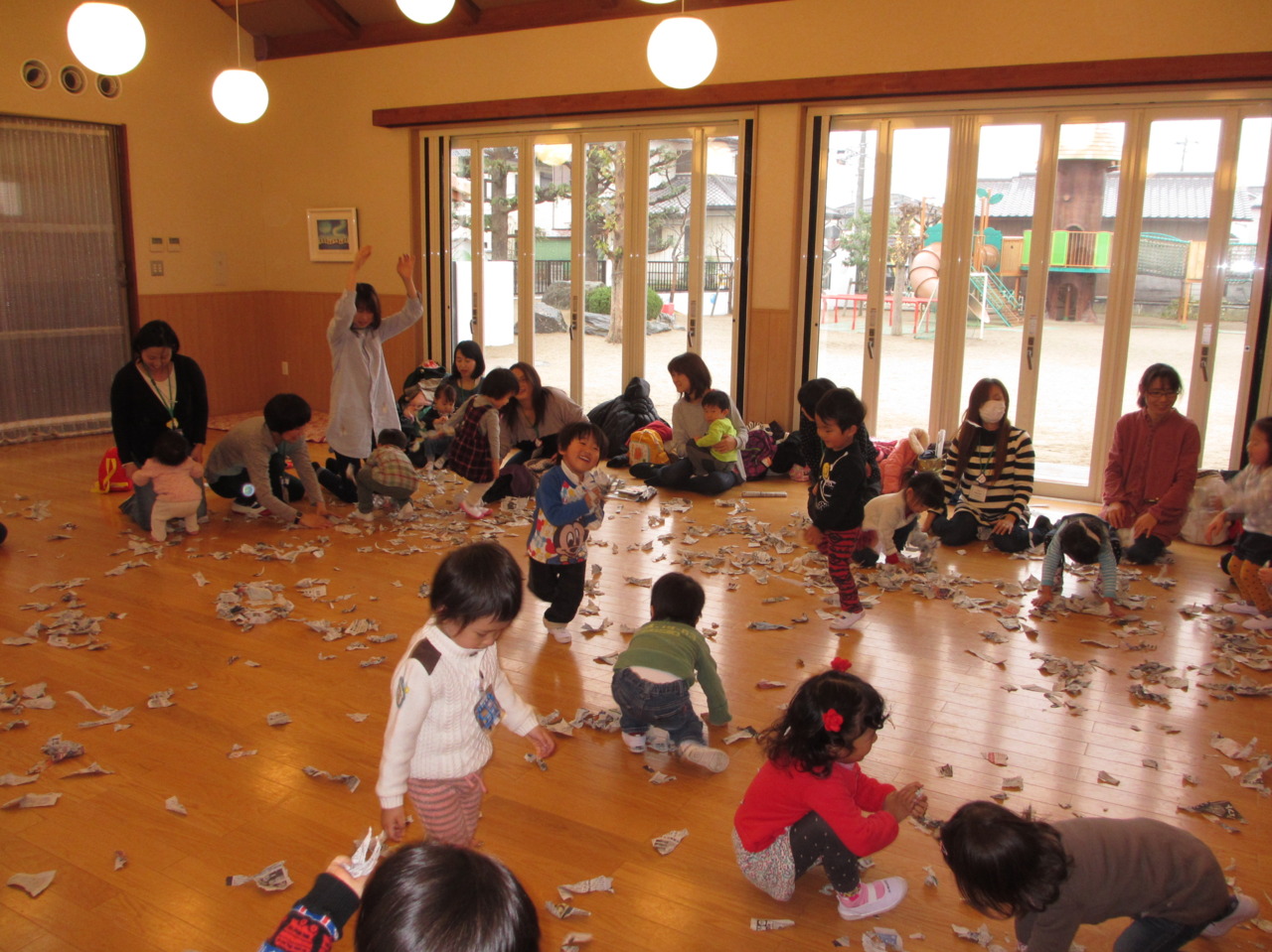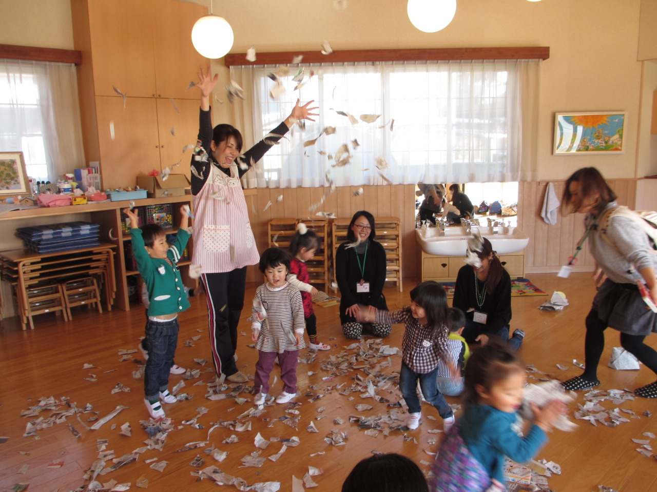 折ったり丸めたり、そして最後はビリビリやぶいて紙吹雪にしました\(^o^)/