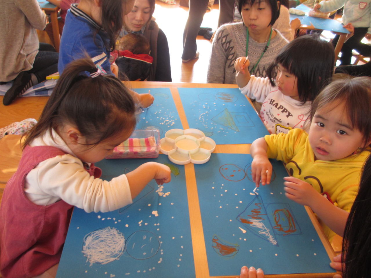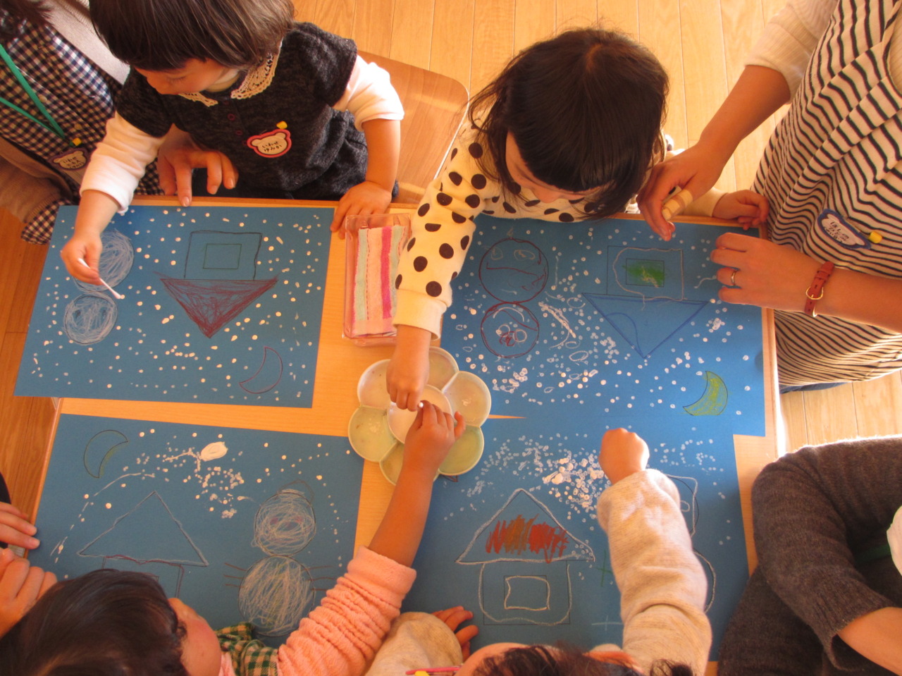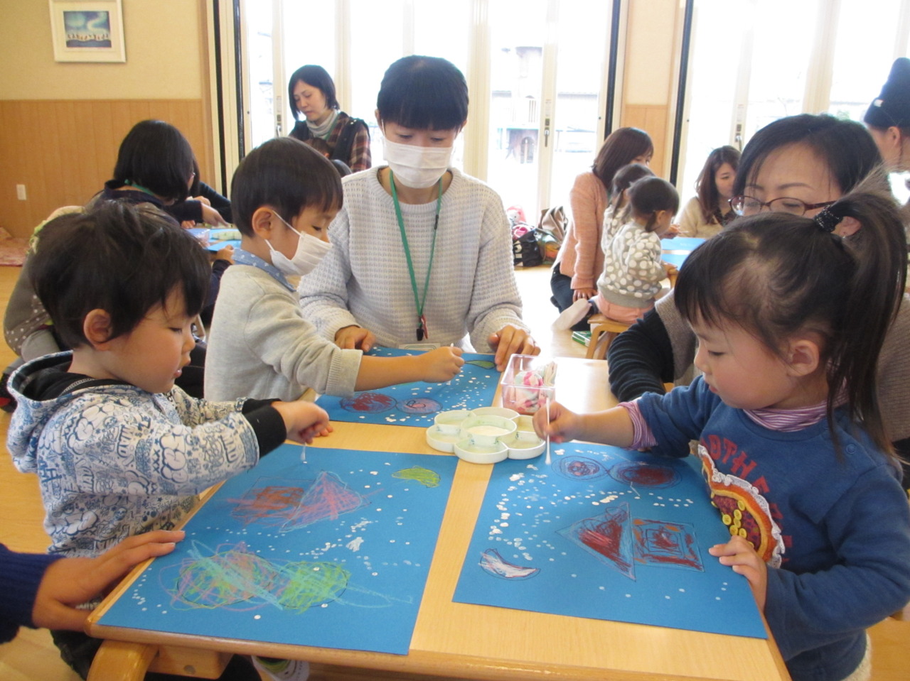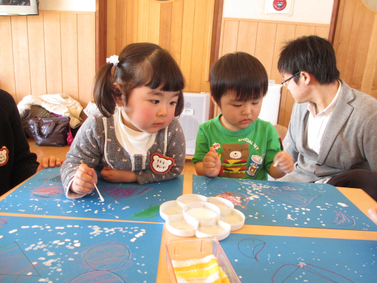 うたを歌った後だったので、綿棒でリズミカルに雪を降らせていました!