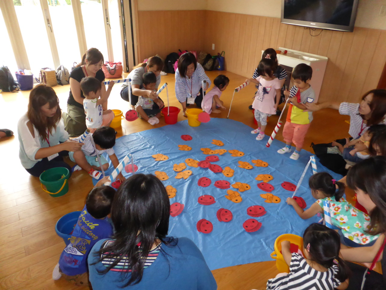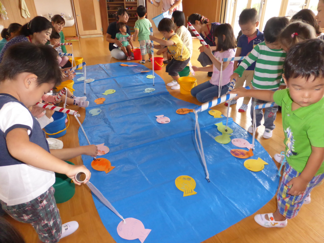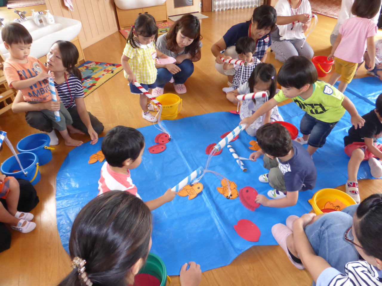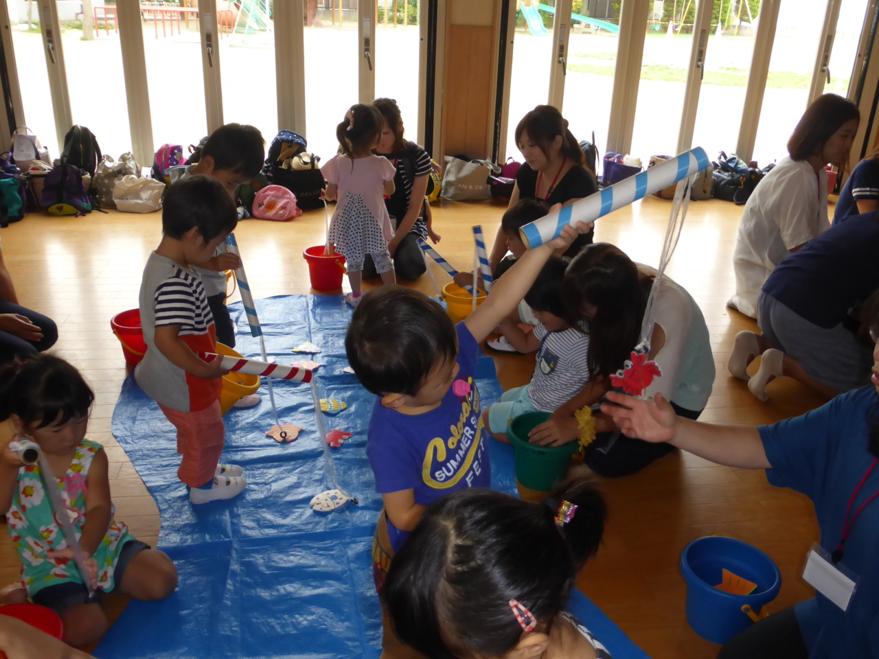 今回のクラブは、運動会の遊戯練習をしたり、魚つりゲームを楽しみました。