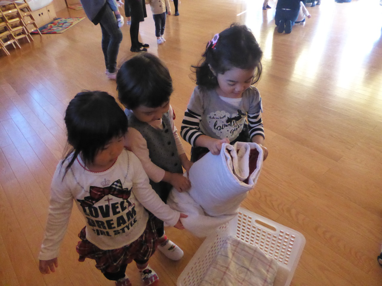 お友だちと協力して「よいしょ!よいしょ!」