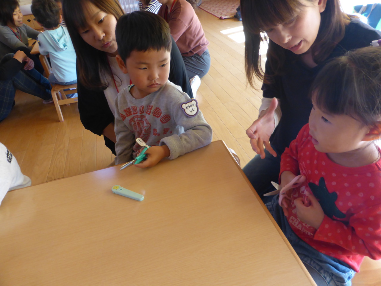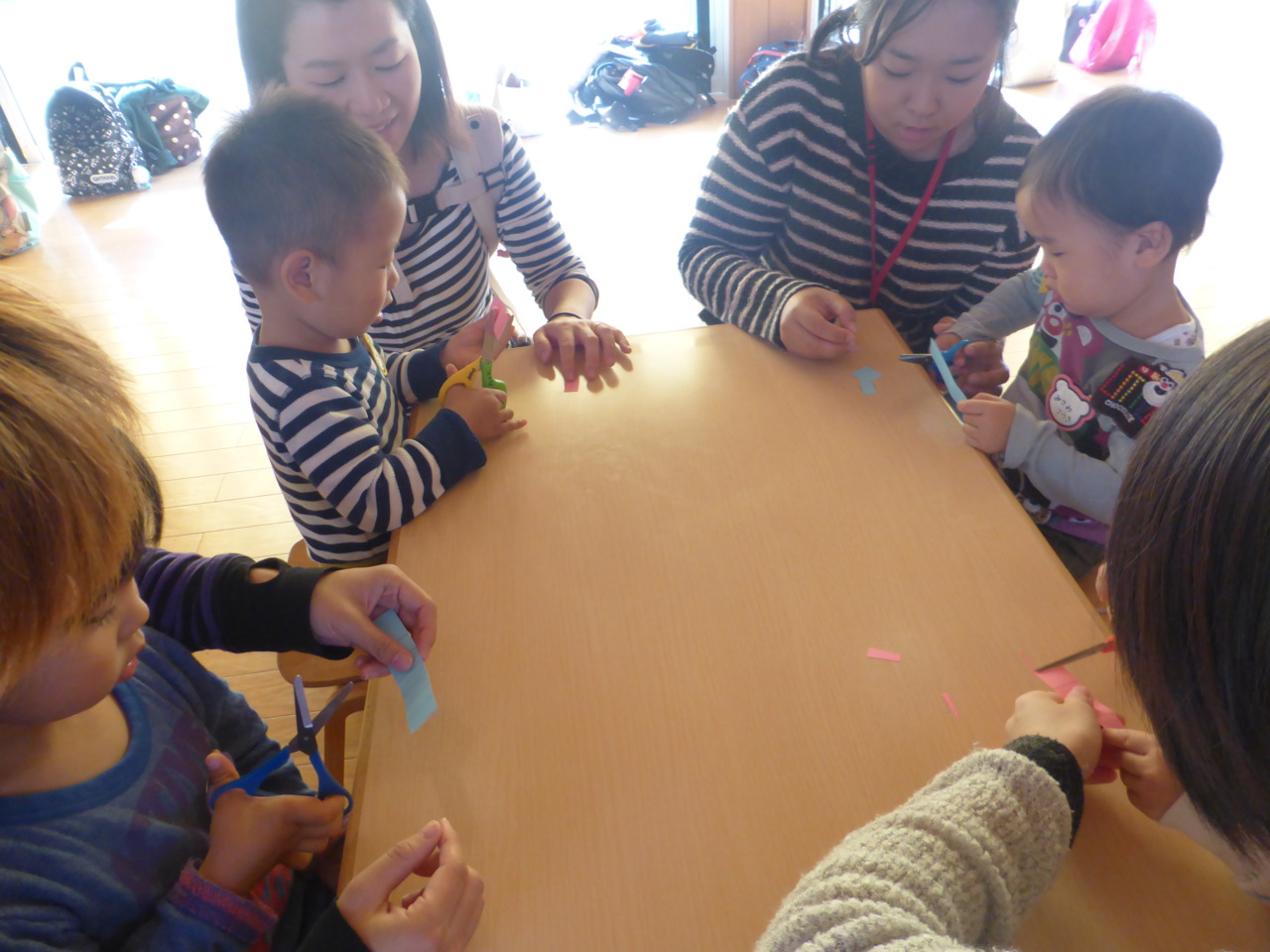 お胸の前で、みんな上手にハサミを使えていますね!