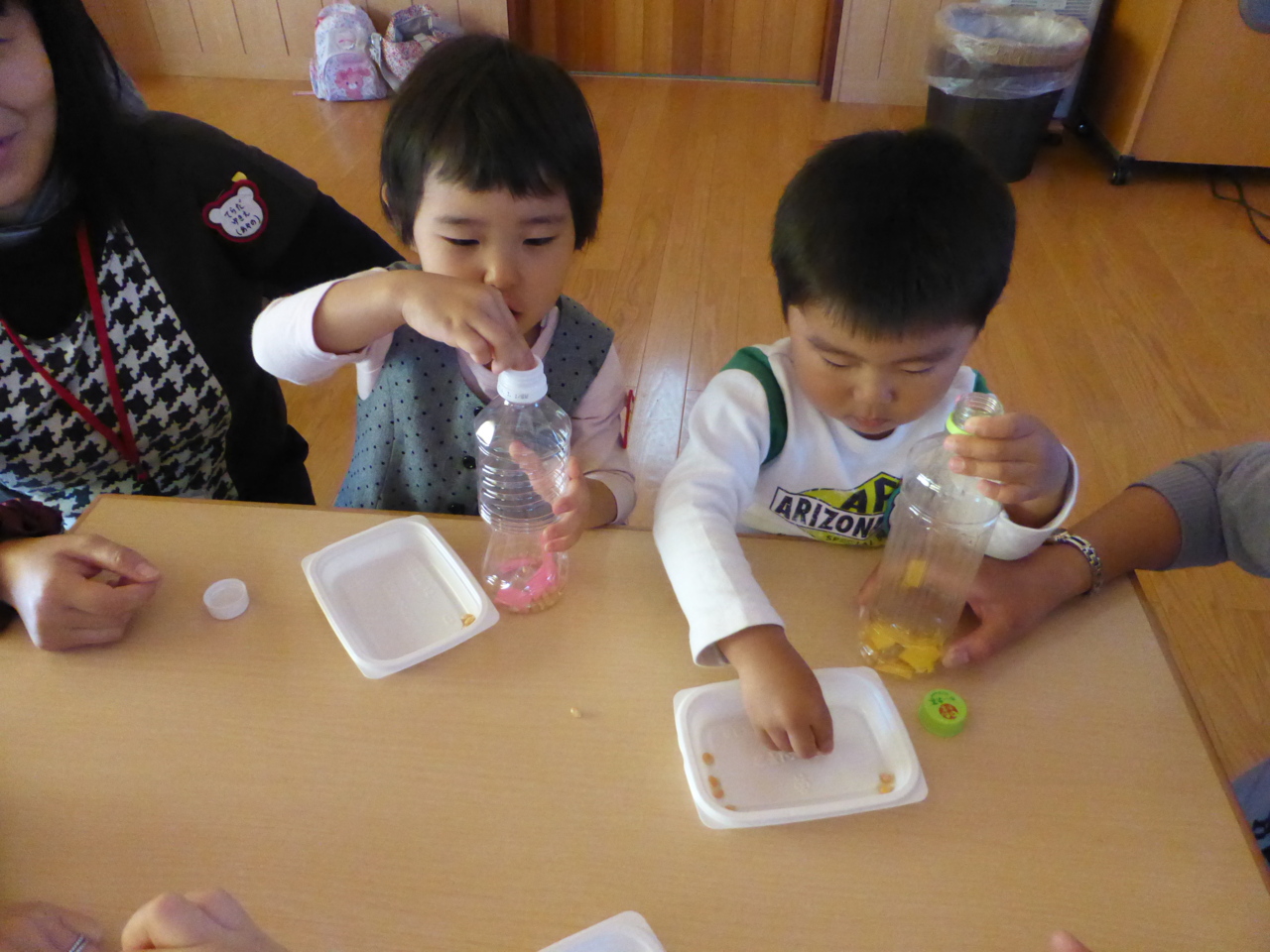 ペットボトルに紙を入れて・・