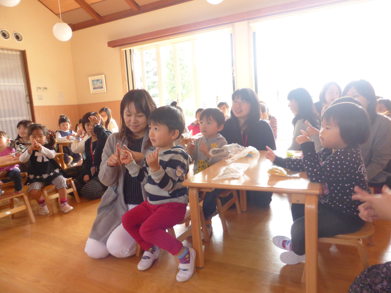 みんな真似っこしながら、やってみました。