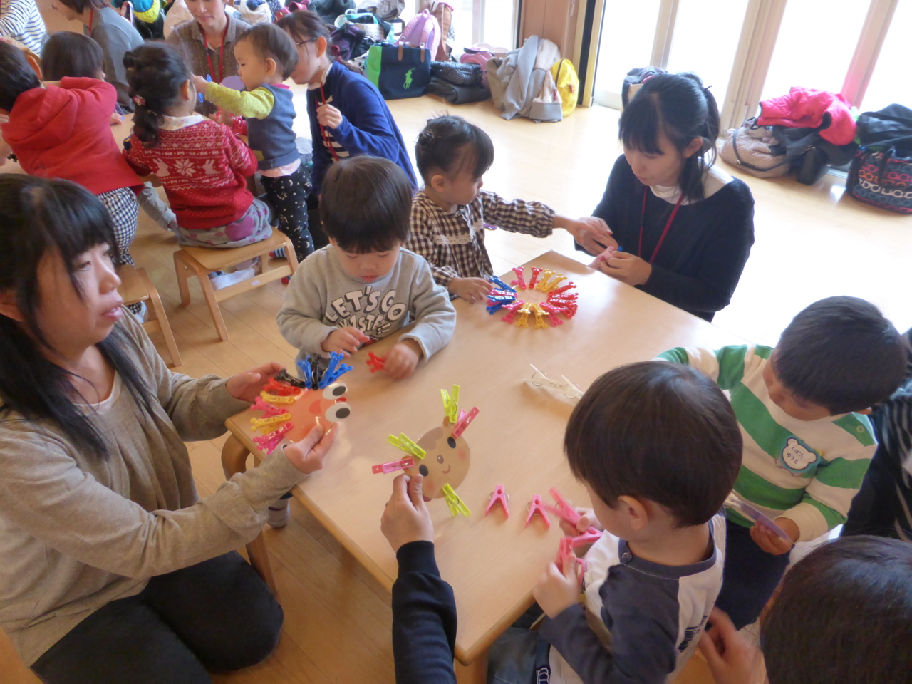 指をたくさん動かしたら、洗濯バサミで遊ぼう!