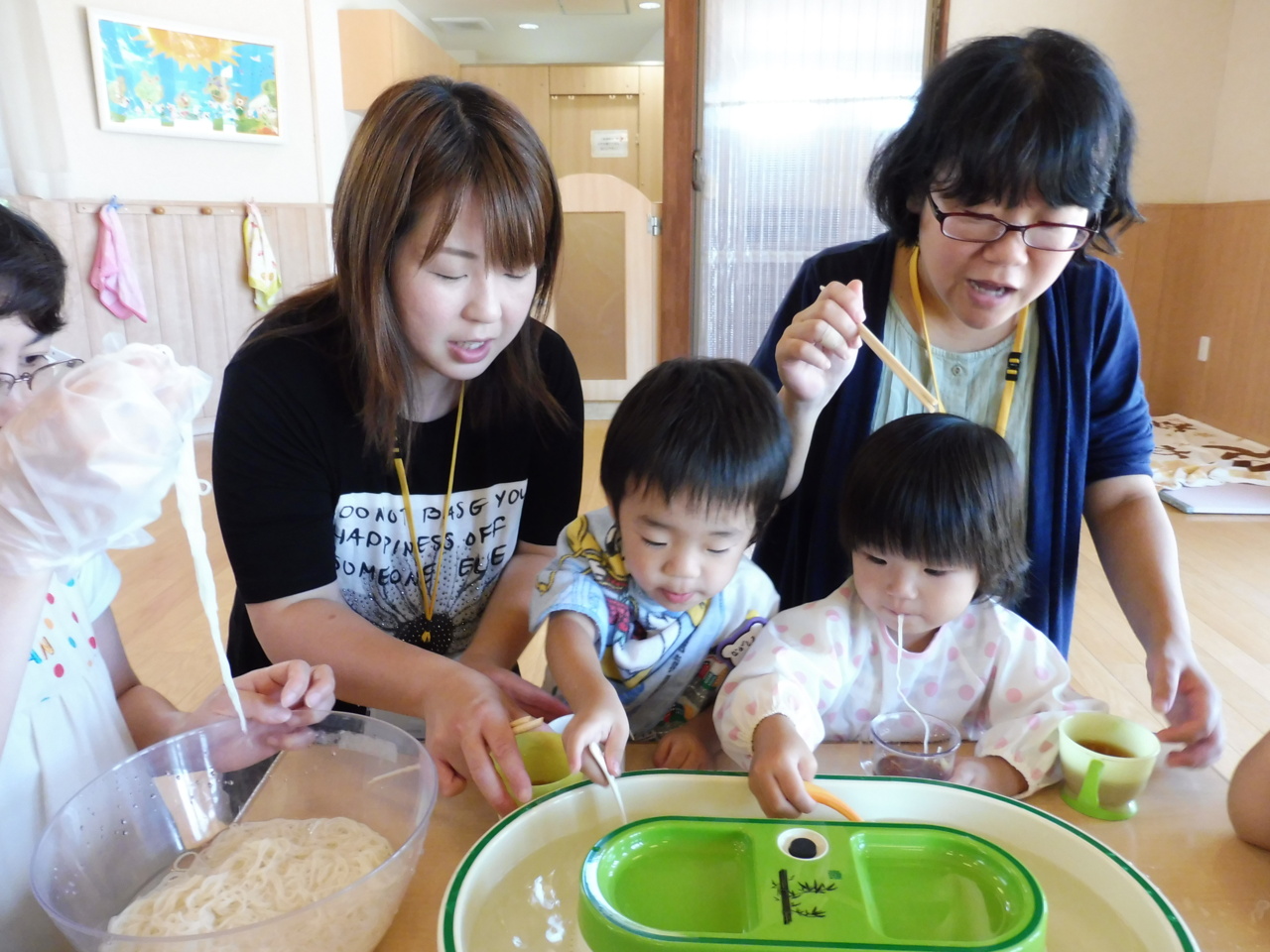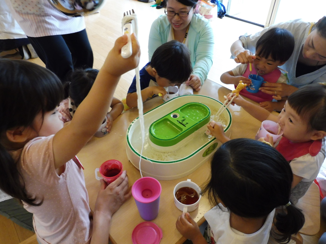 くるくそうめん開始~♪ながーいそうめんつかまえた(*^^)!