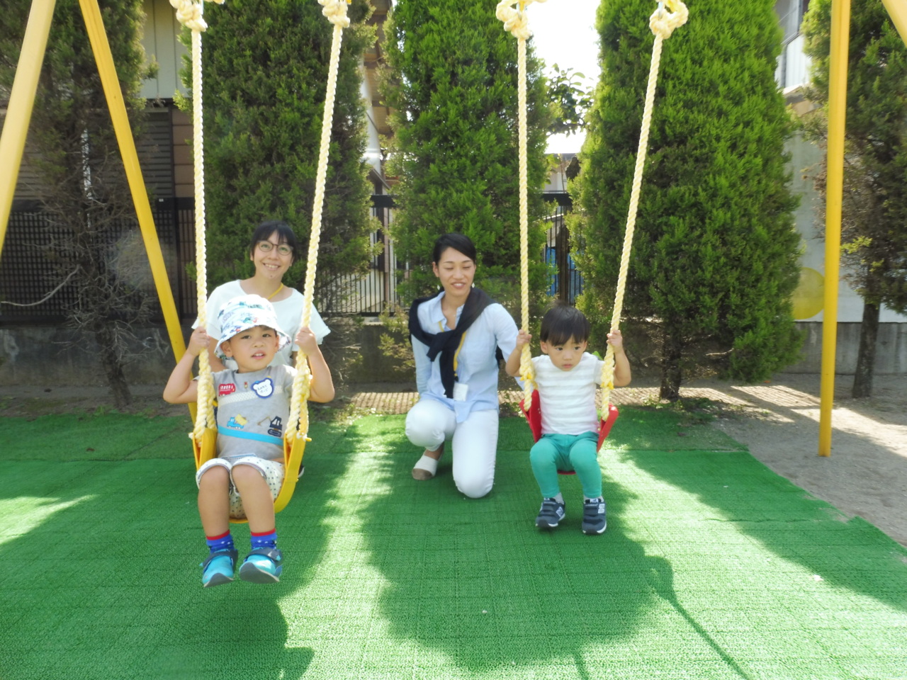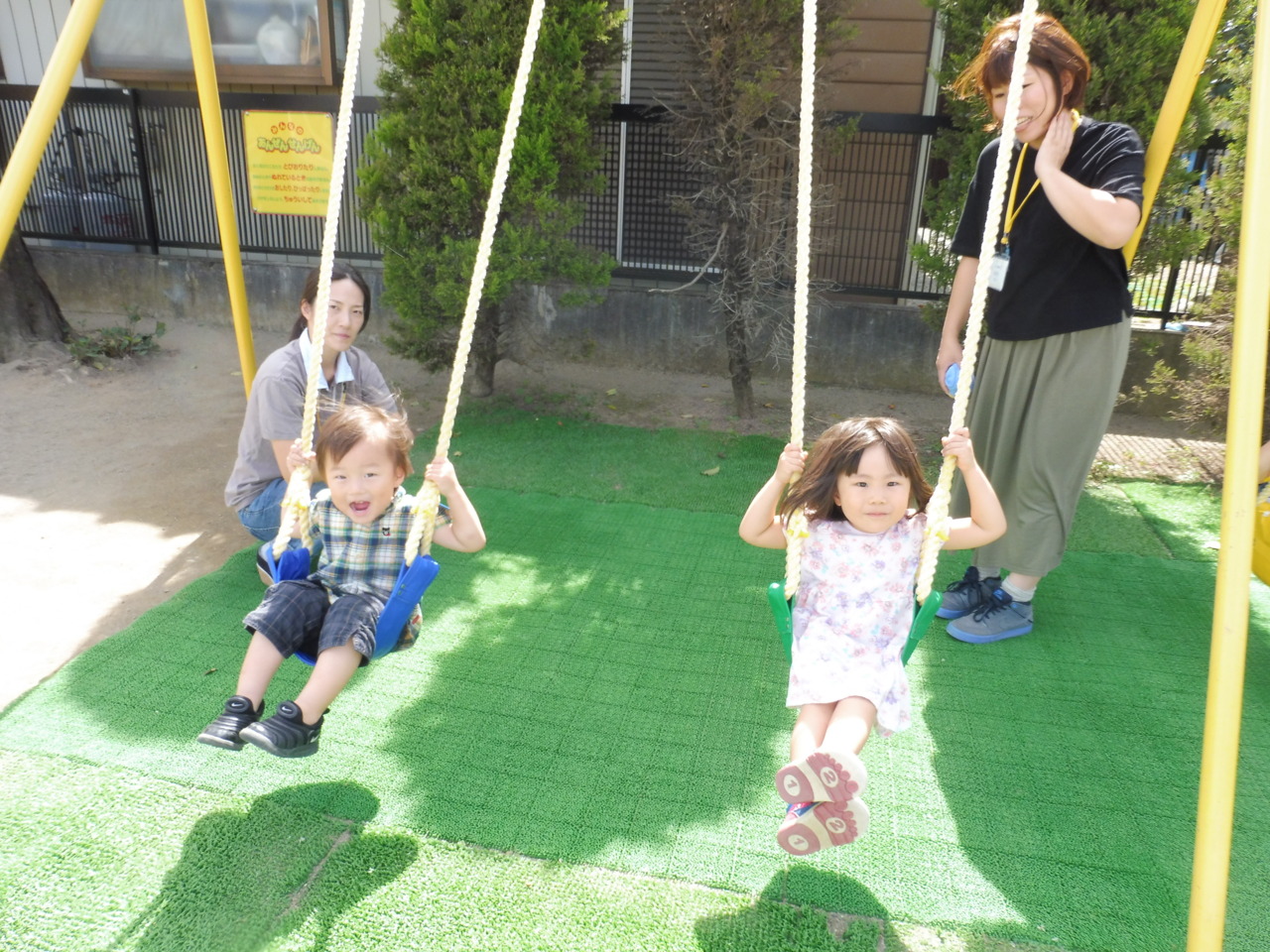 新しくなったブランコで遊びました。