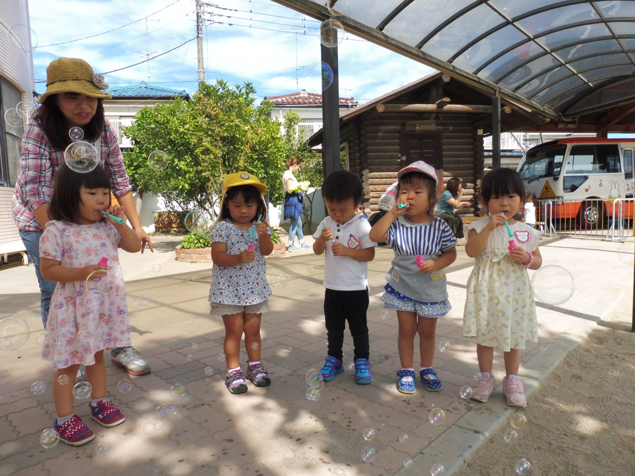 やっとできた♪シャボン玉♪に、みんな大満足でした。