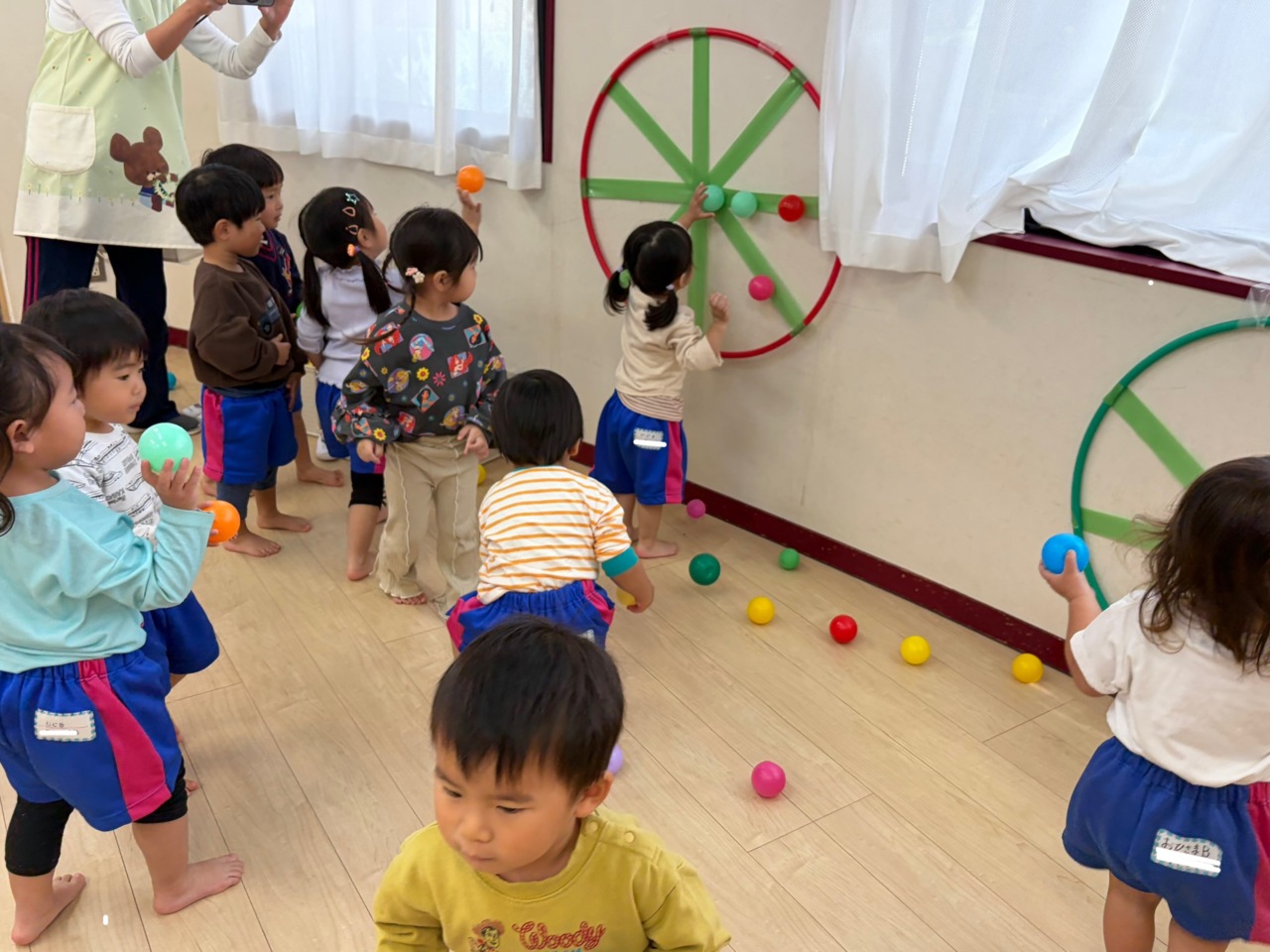 2つ目は「ボール投げ修行」 たくさんのボールが、くっつくかな?