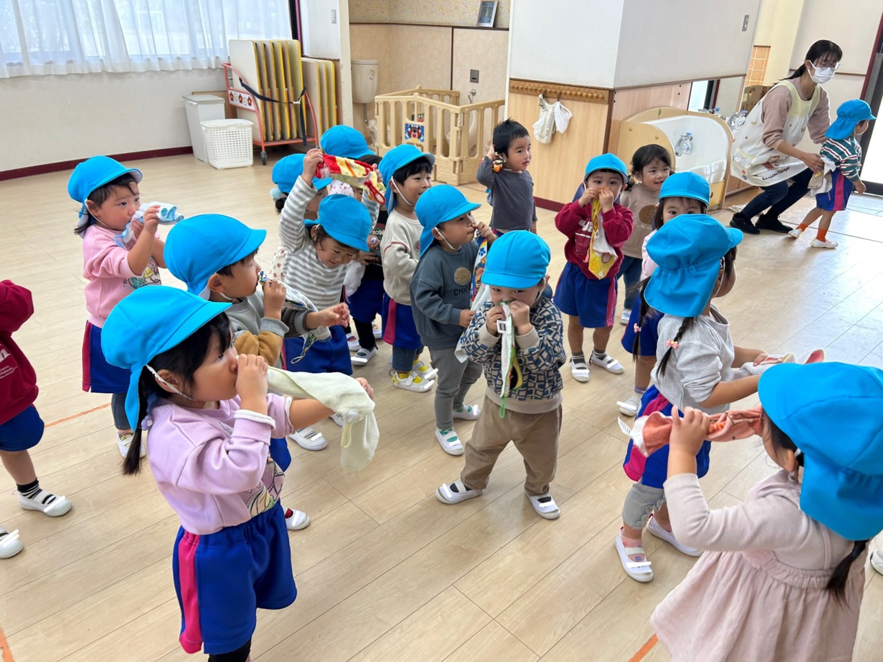タオル体操☆ 初めての体操です。 先生の真似っこしながら踊りました♪