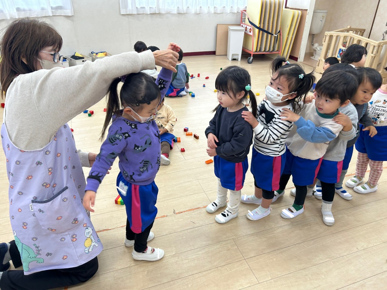 朝の室内遊び☆ ♪なべなべそこぬけ~♪が人気です。 先生とやりたくて、順番待ち(о´∀`о)