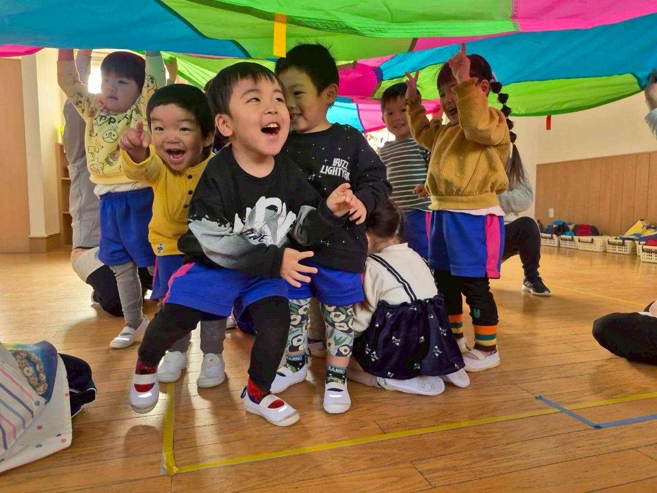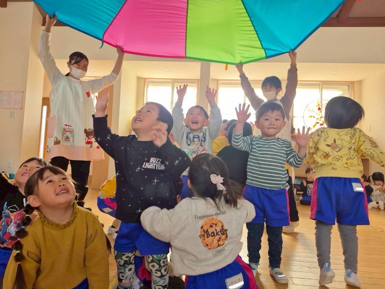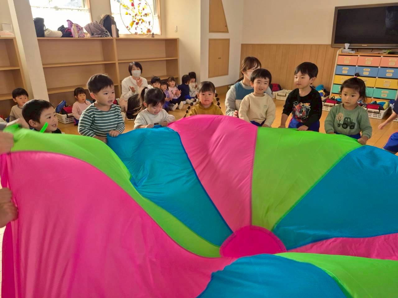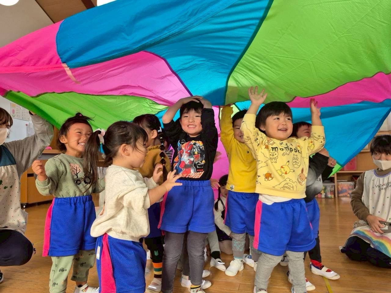 今までも何度かやったことがあったので、登場したパラバルーンを見ただけで大喜びの子どもたちでした。