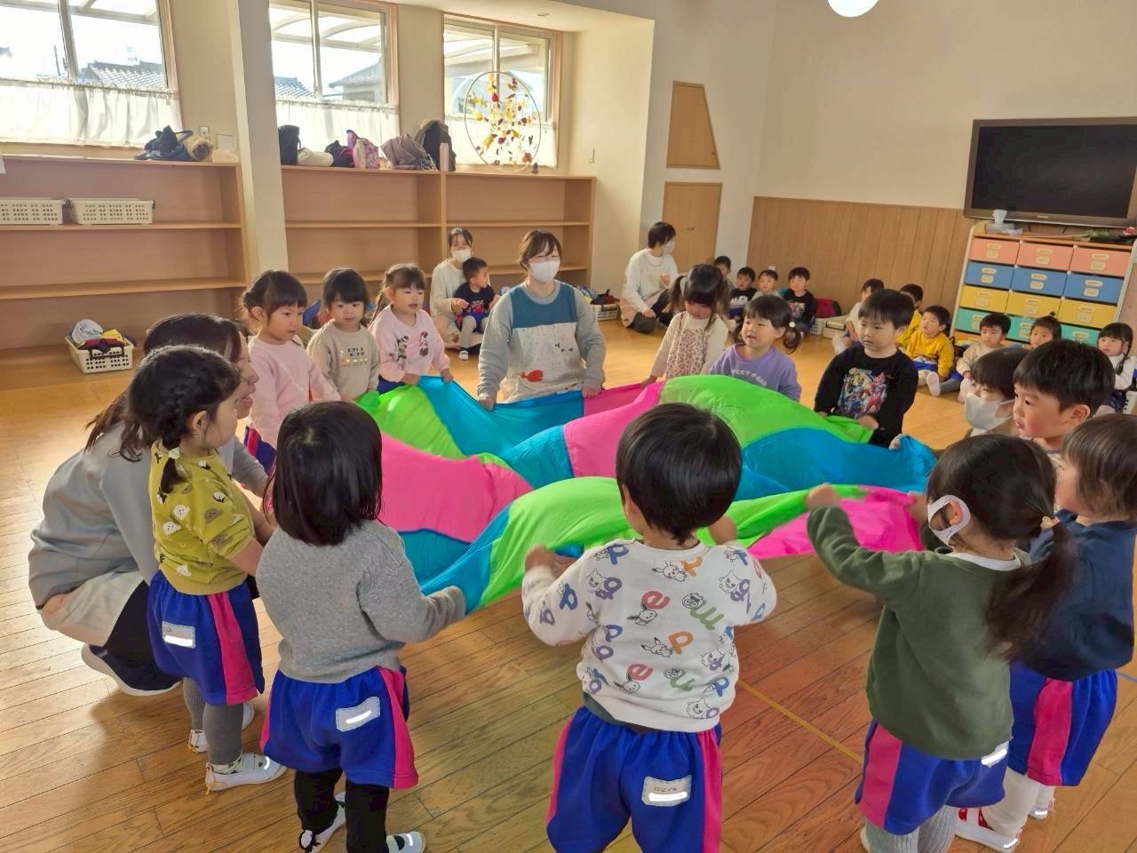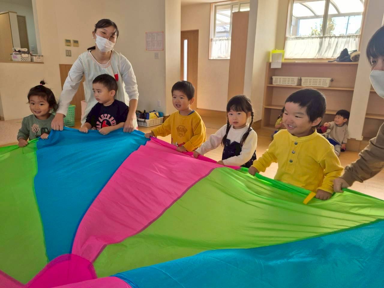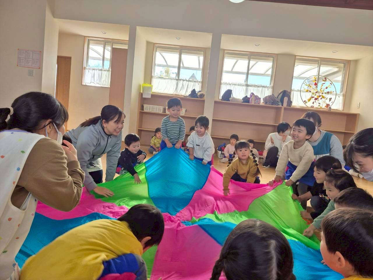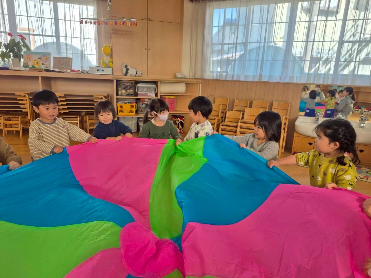 今までも何度かやったことがあったので、登場したパラバルーンを見ただけで大喜びの子どもたちでした。