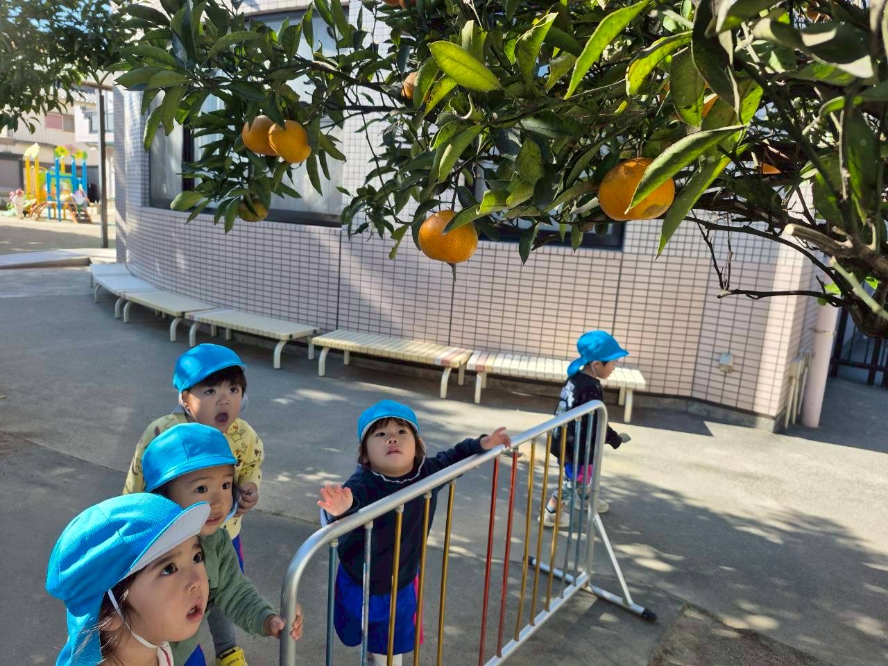 みかんの木を発見!「これ食べられる~!?」