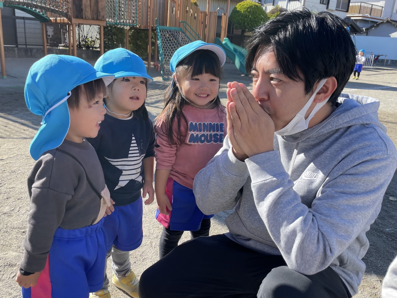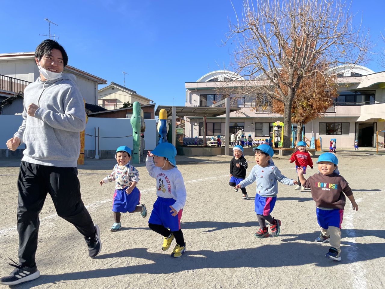 外でよーいドン!!先生つかまえられるかな!?