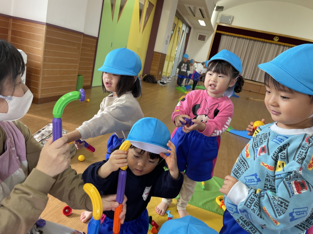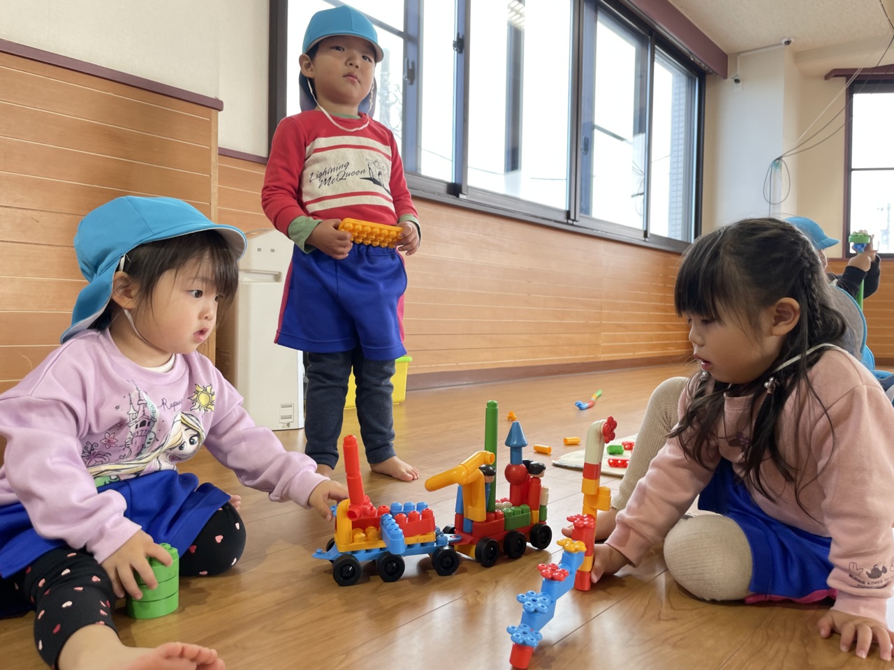 工夫してつなげて遊びます!ブロック遊びが上手です( ´ ▽ ` )