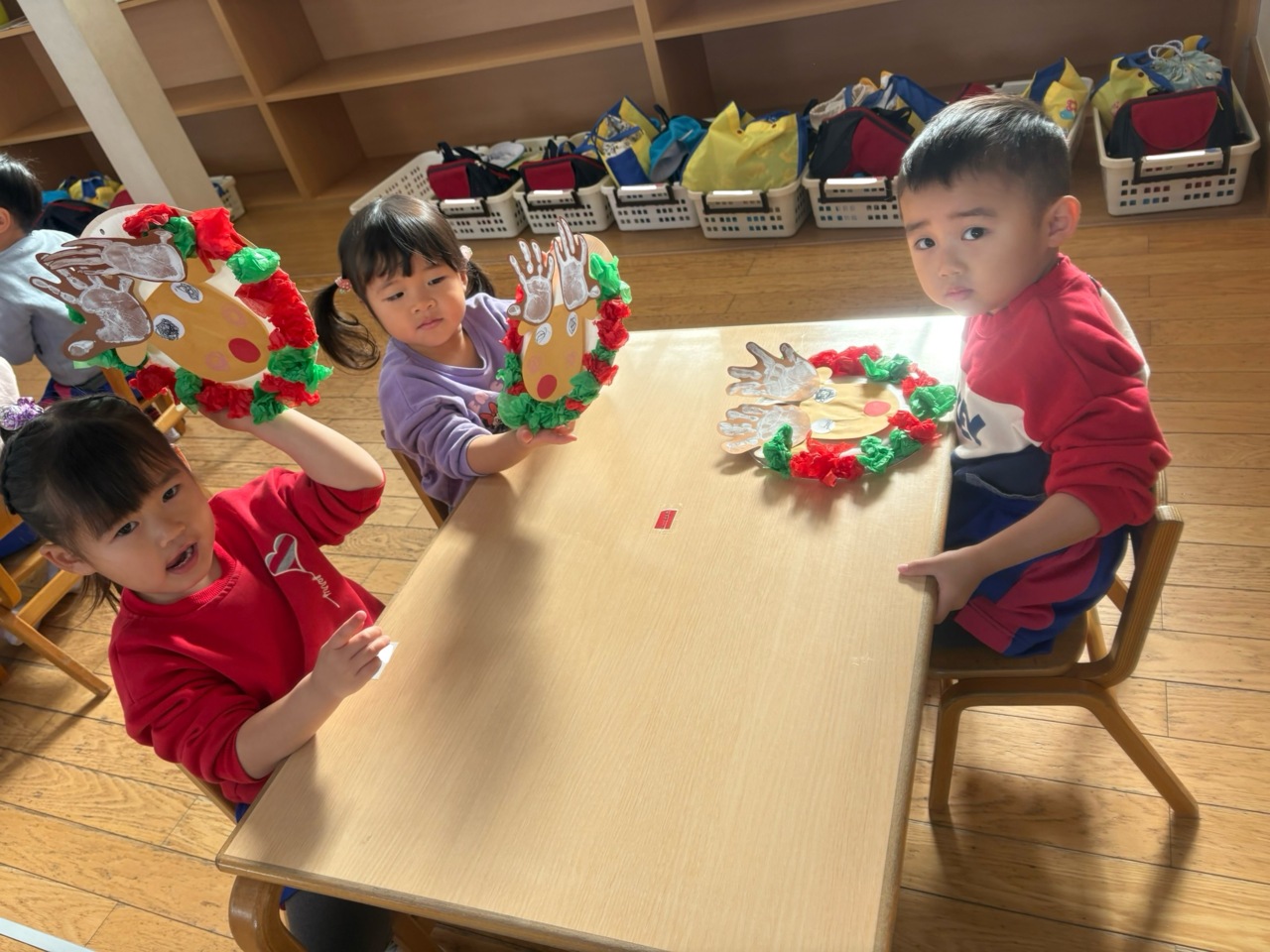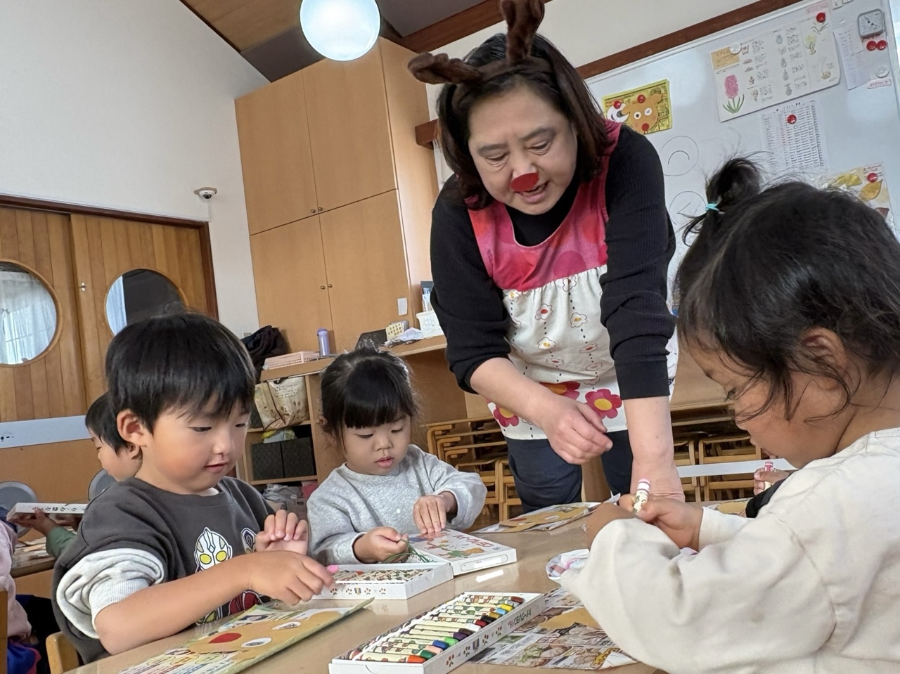 先生がトナカイに変身!? にじさんも赤鼻のトナカイさんを作りました♪