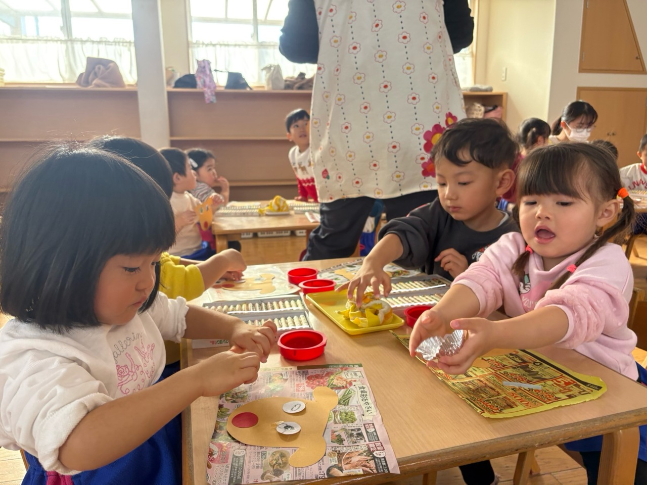 のりで目をはっていきます。 のりのお仕事が上手になりました。