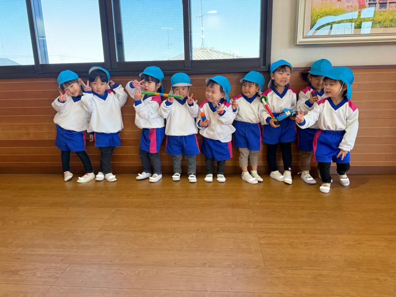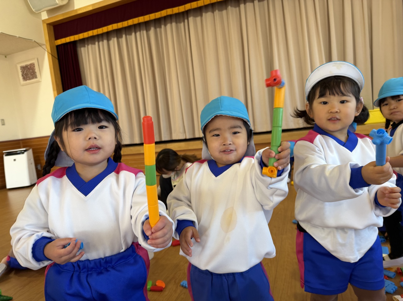 いつものお部屋が工事中の為、お遊戯室で遊びました♪
