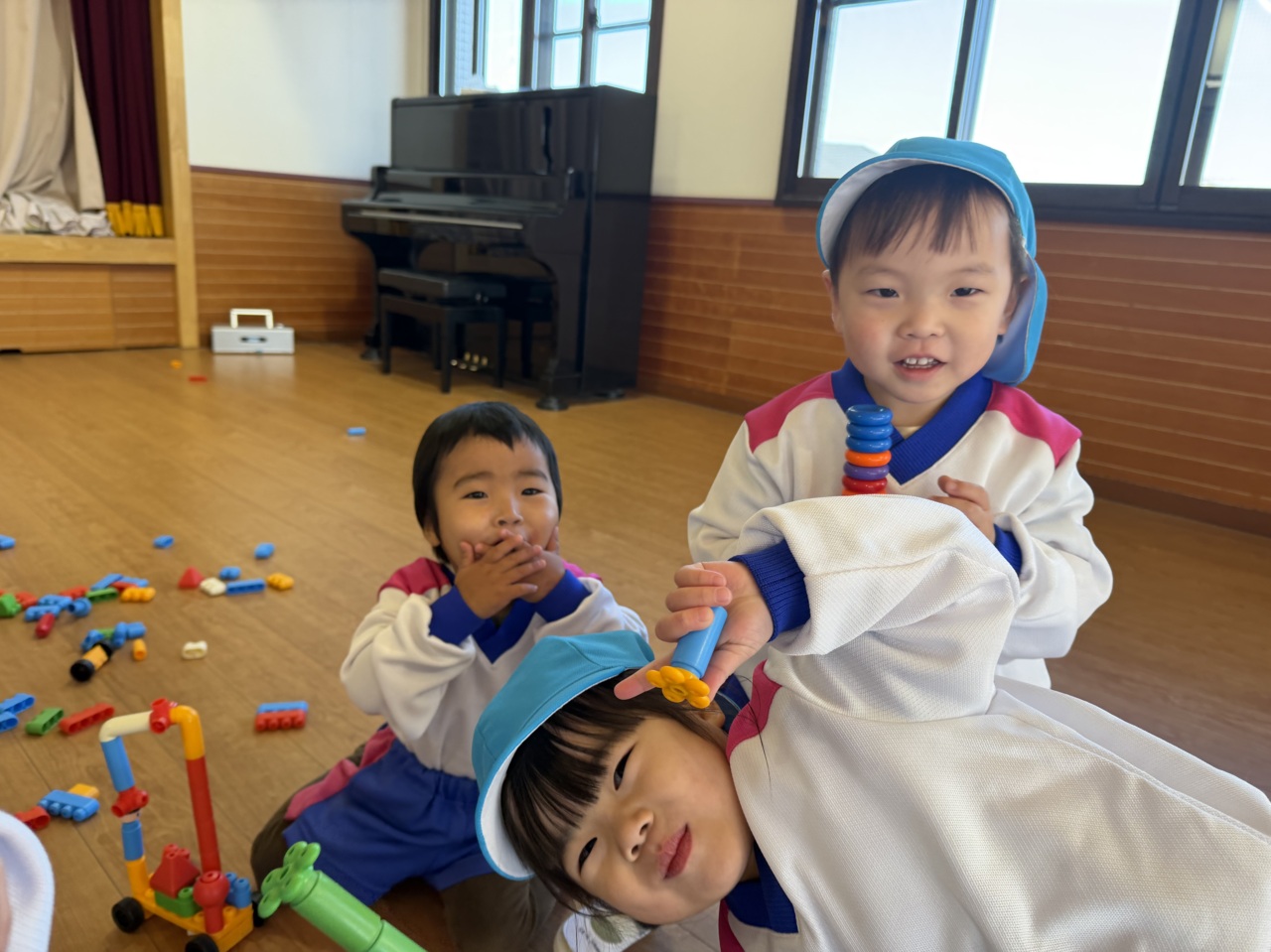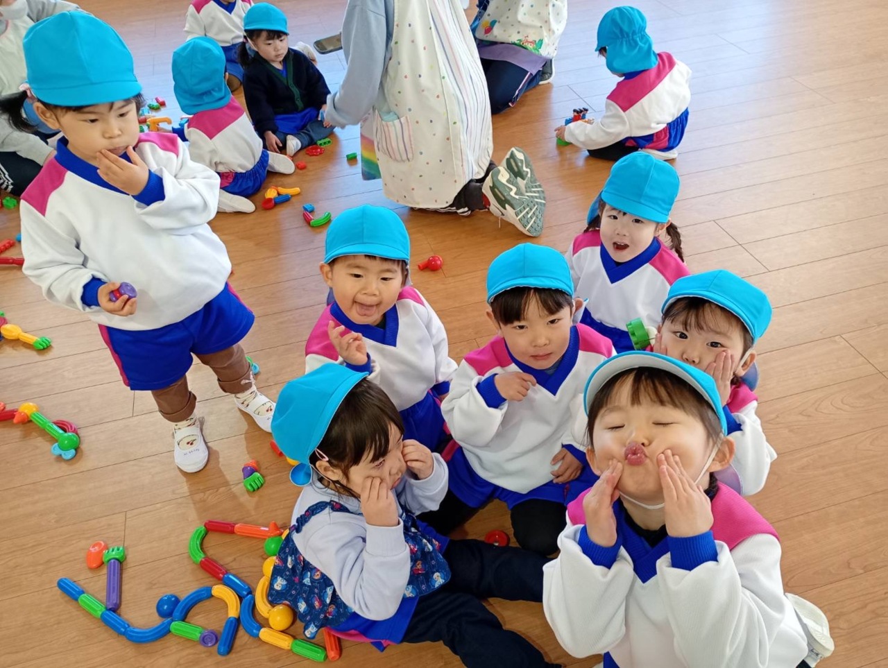 ちょっぴり泣いていたお友だちも、みんなが集まると笑顔に!