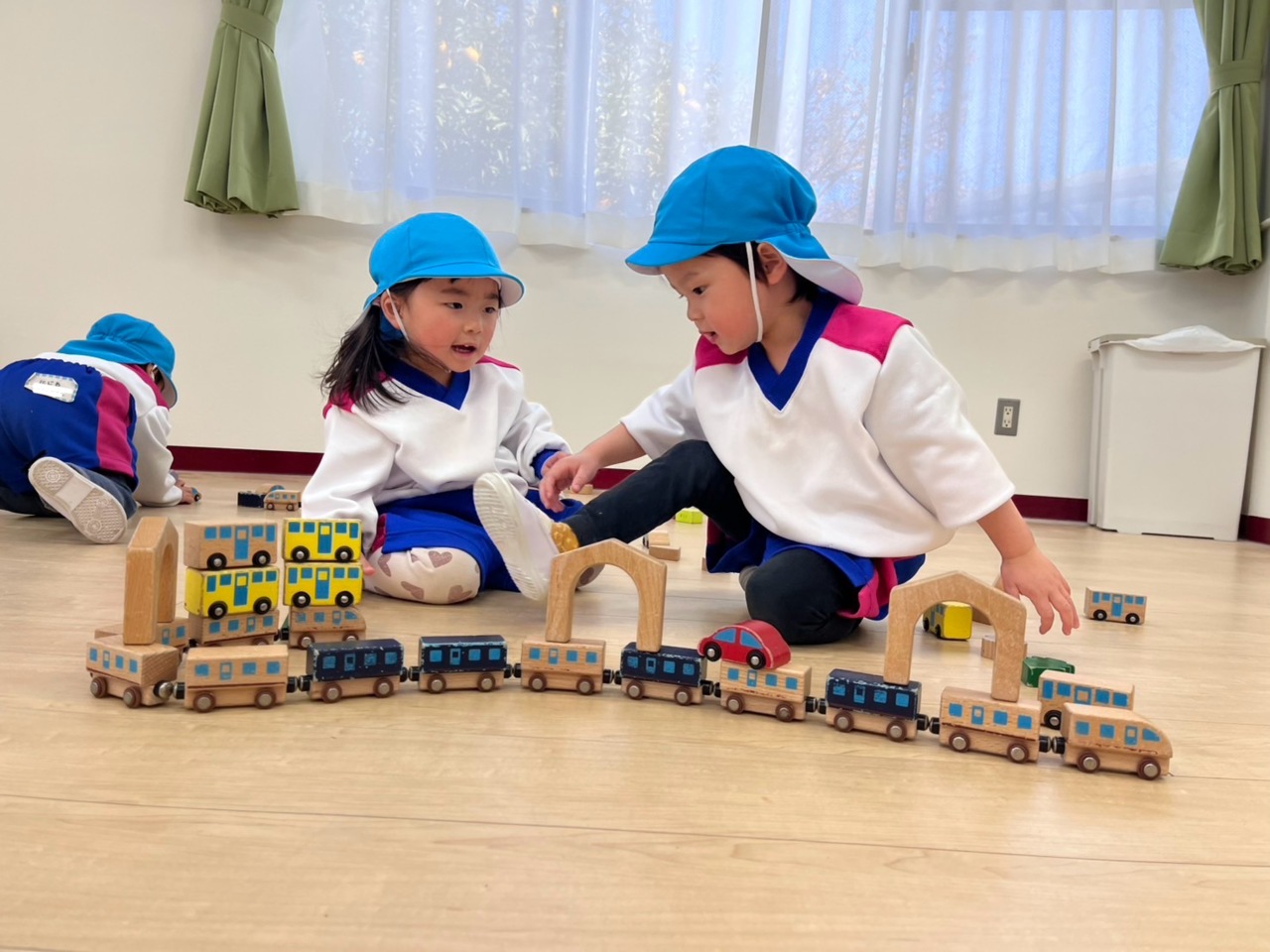 人気の木のおもちゃで、仲良く遊んでいます♪