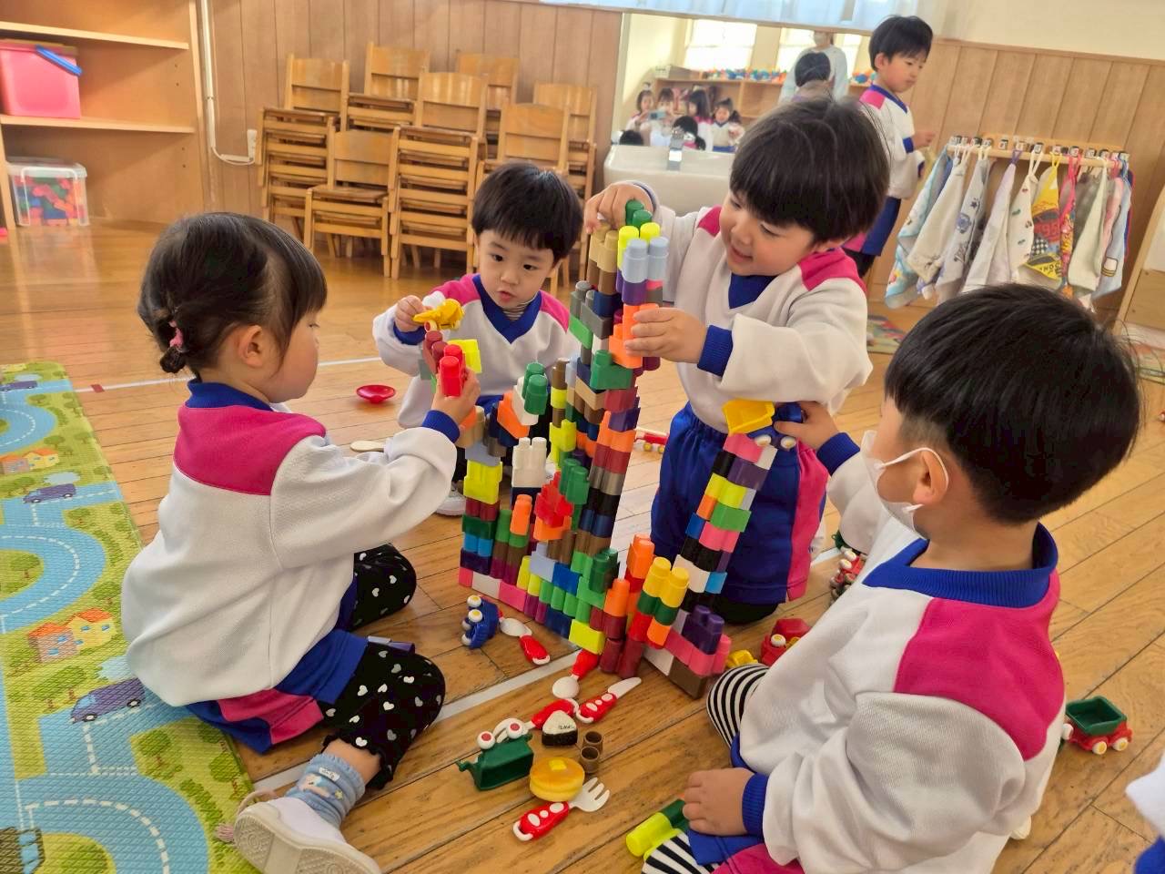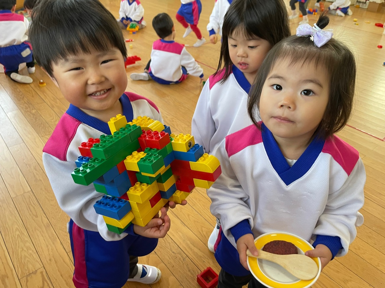 担任にブロックですごいのを作って見せてくれたり、ままごとでご飯を持ってきてくれたりします( ´ ▽ ` )