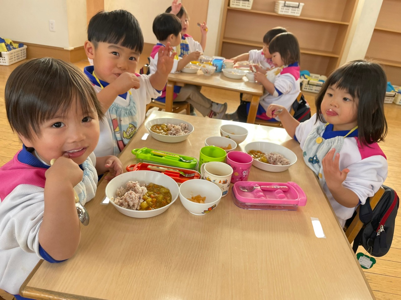 食べられる量がどんどん増えています。 おかわりする子もたくさんいるにじさんです!