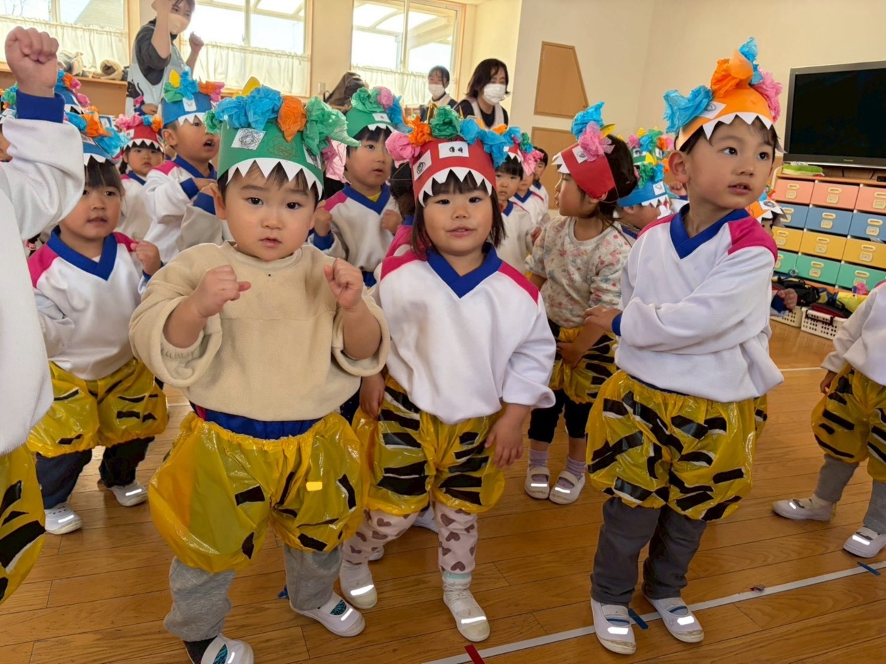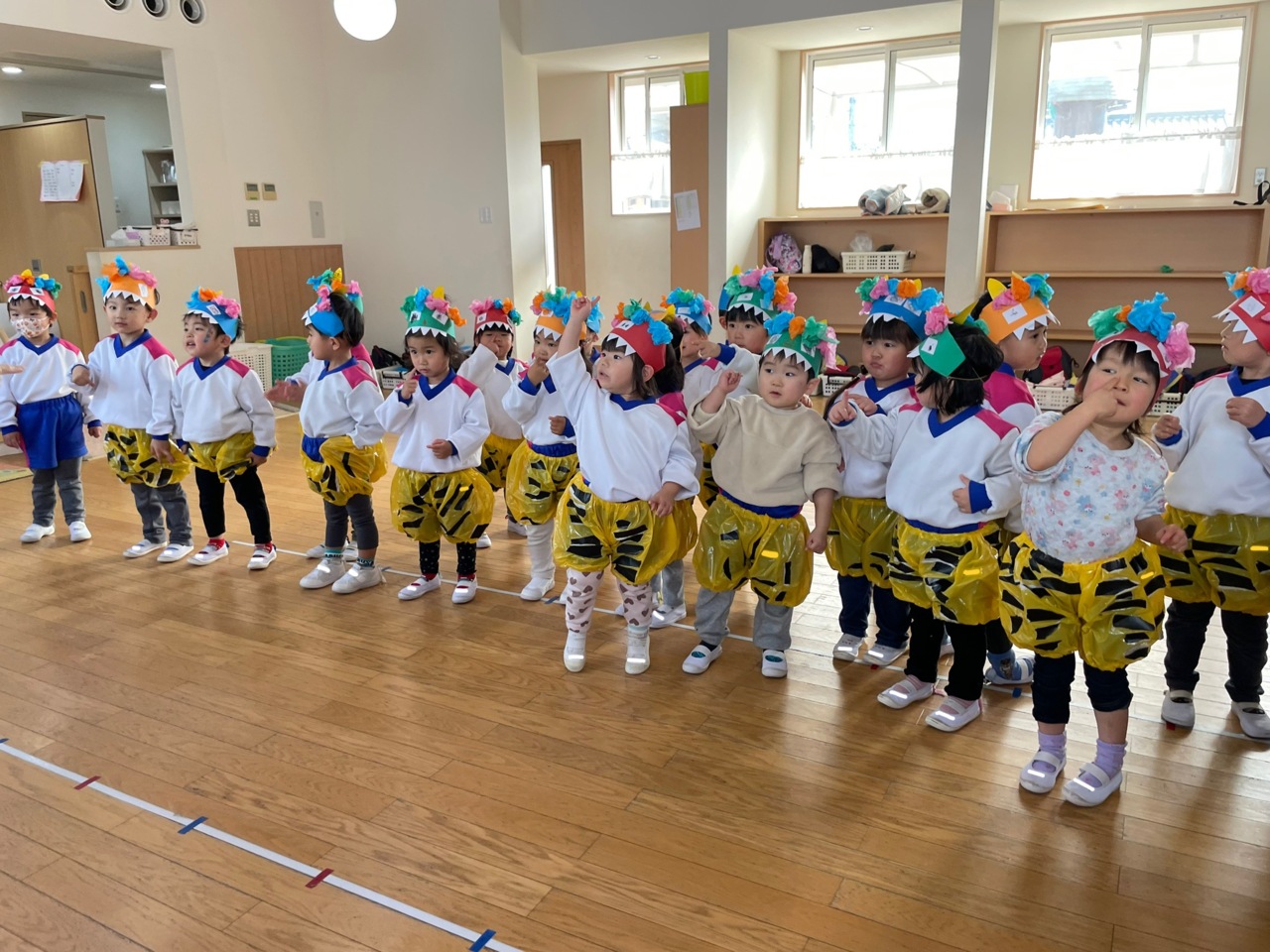 まずはみんなで、上手に歌えるようになったオニのパンツを踊りながら歌いました!