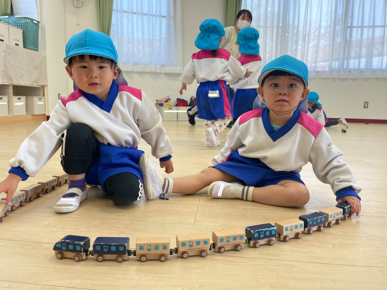 お支度を済ませて遊び始め、「いーれーてっ!」と仲間が増えていきます。