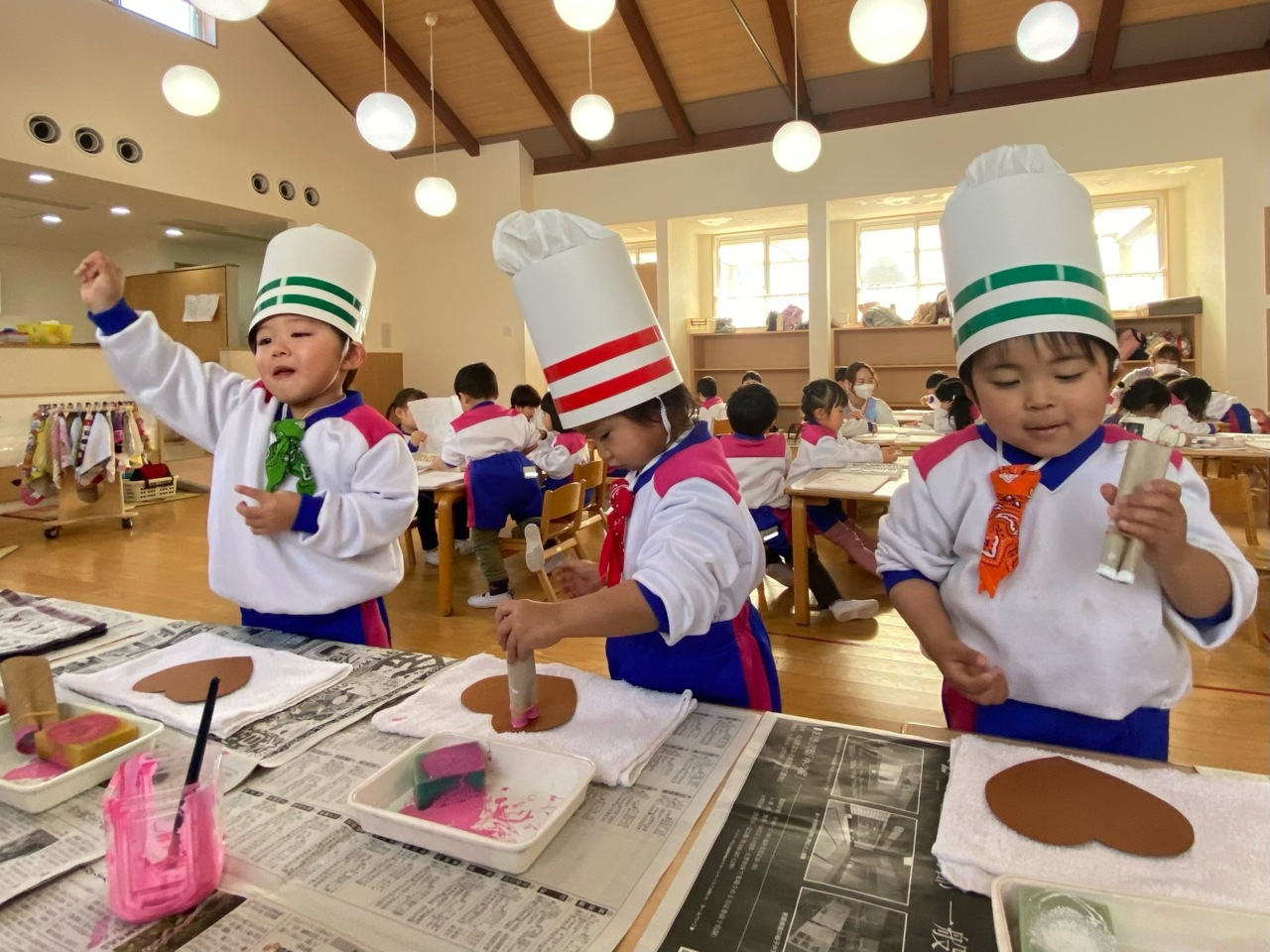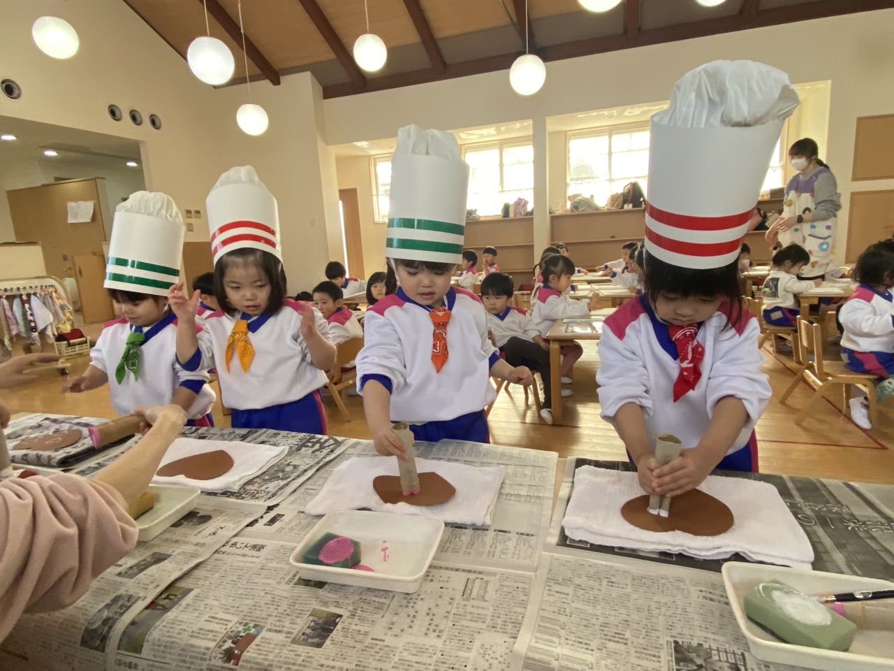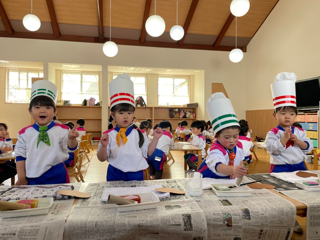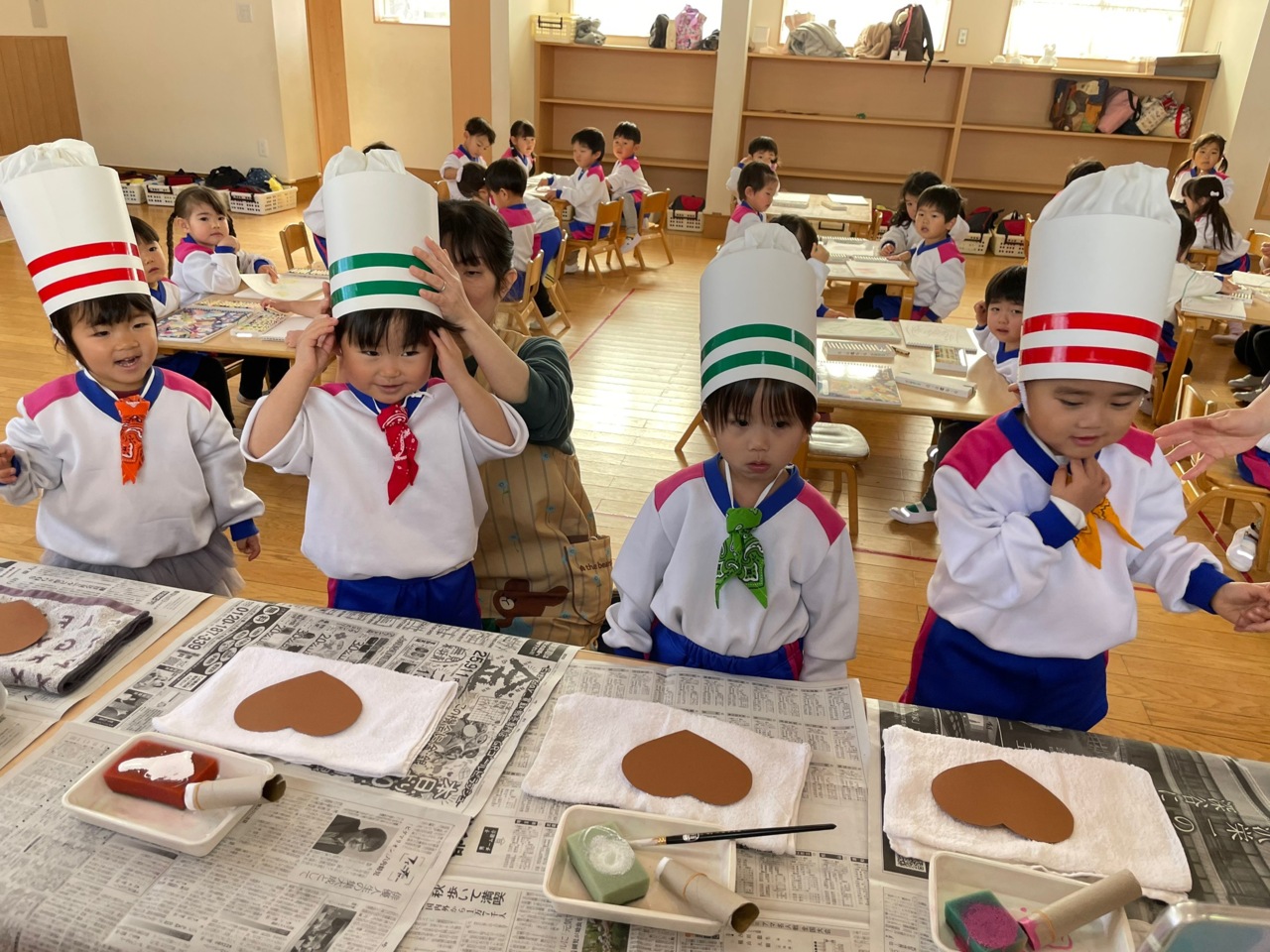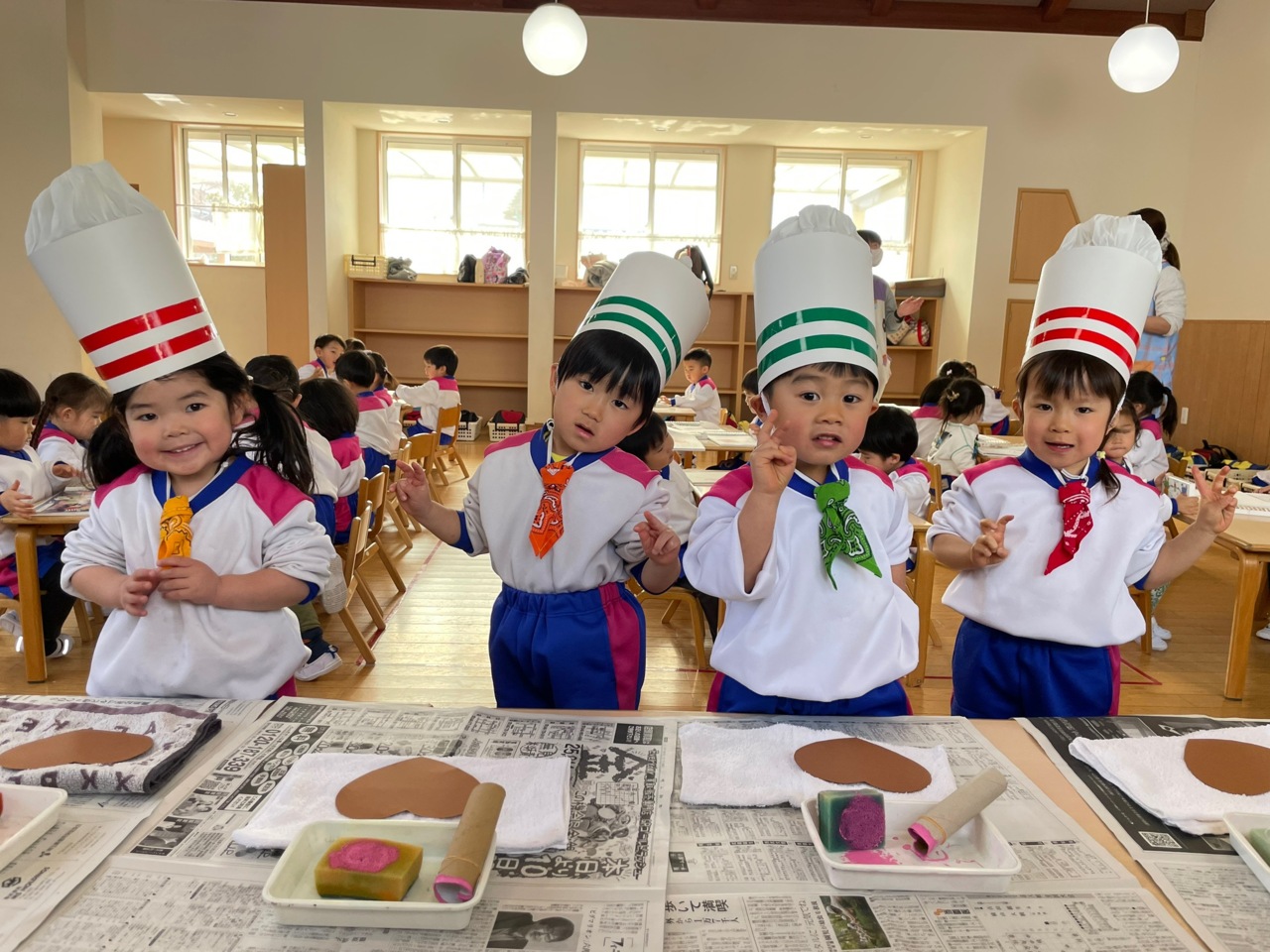帽子をかぶって、コックタイをつけて準備完了です♪