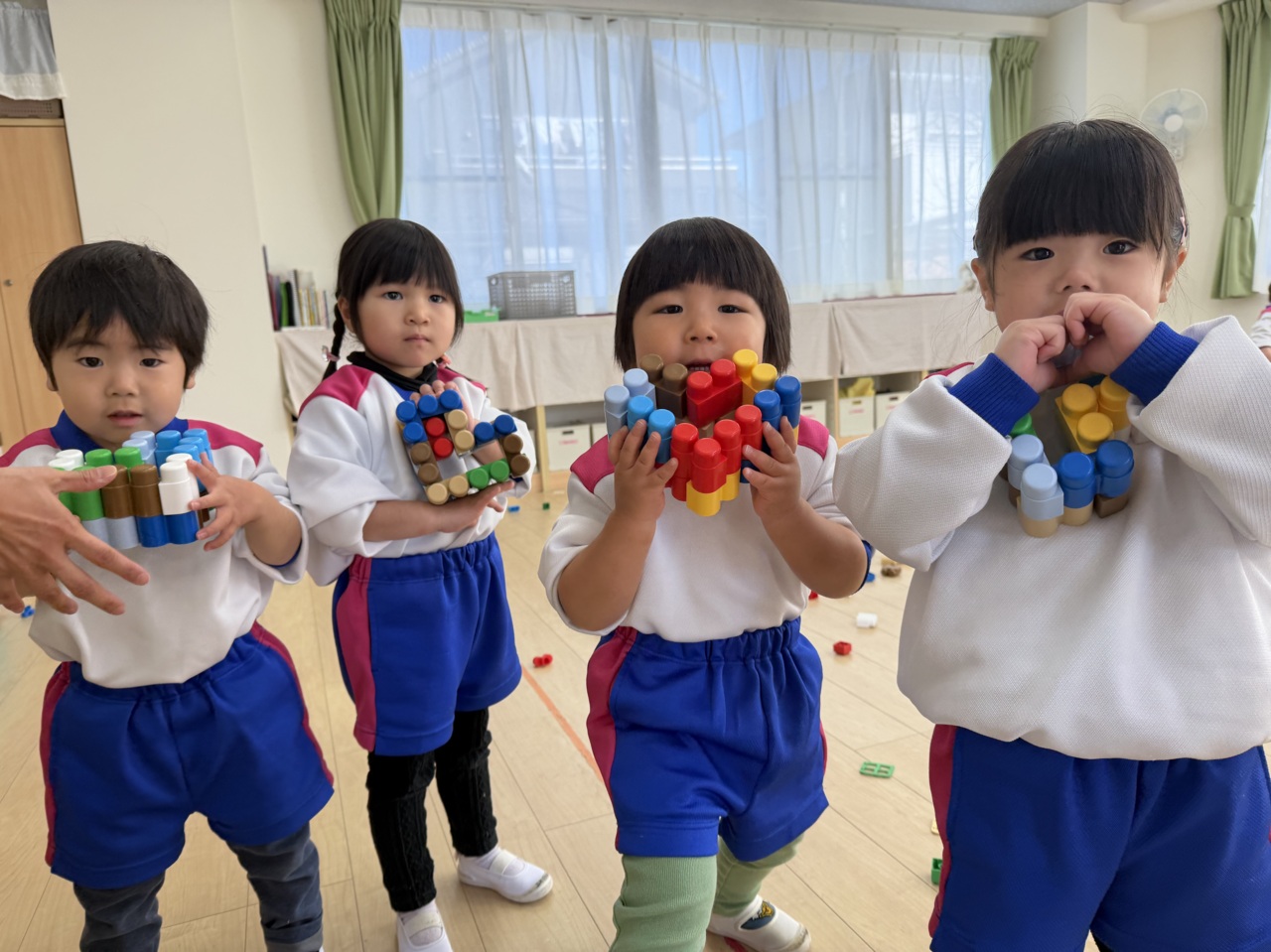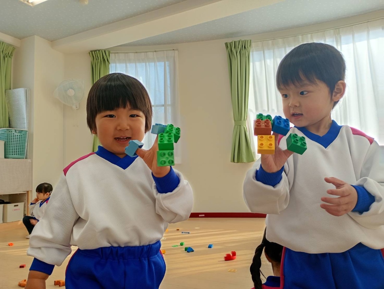 レゴブロックを指にはめて遊んでいるお友だち☆