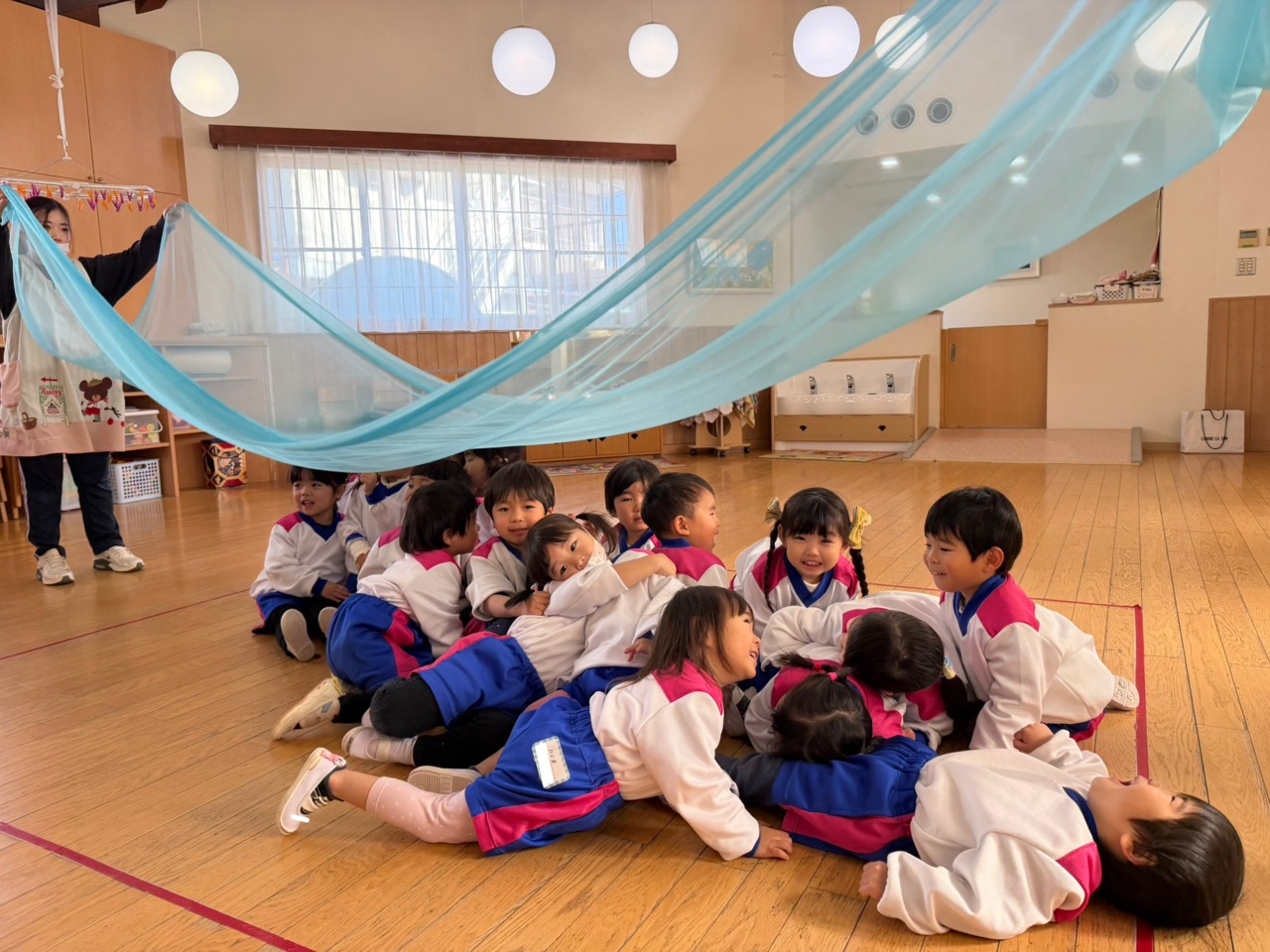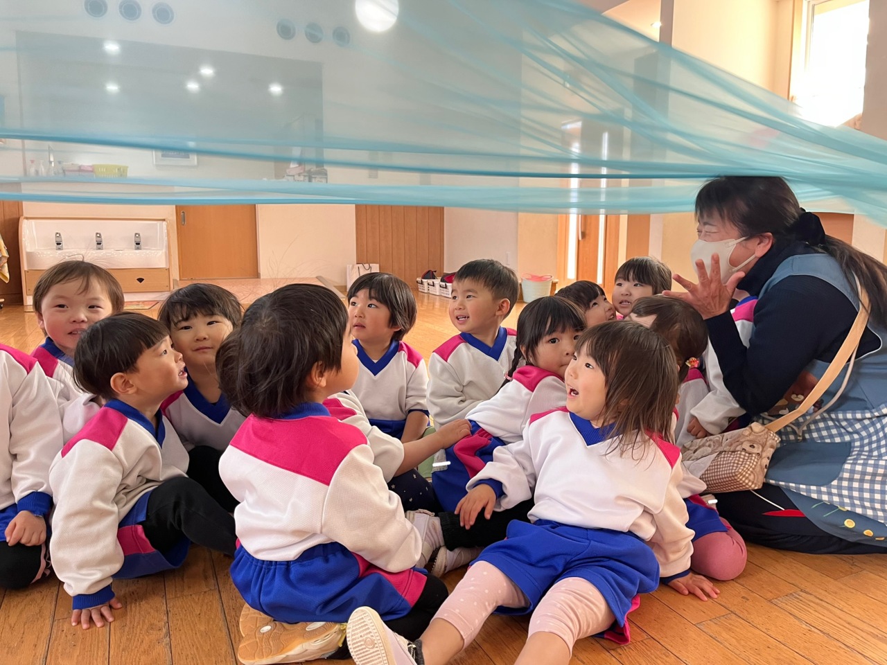みんなで波の中に入って、大波小波を感じました。 リズムや音に合わせて、身体を動かすリトミック♪ 今回も楽しく参加出来ました!